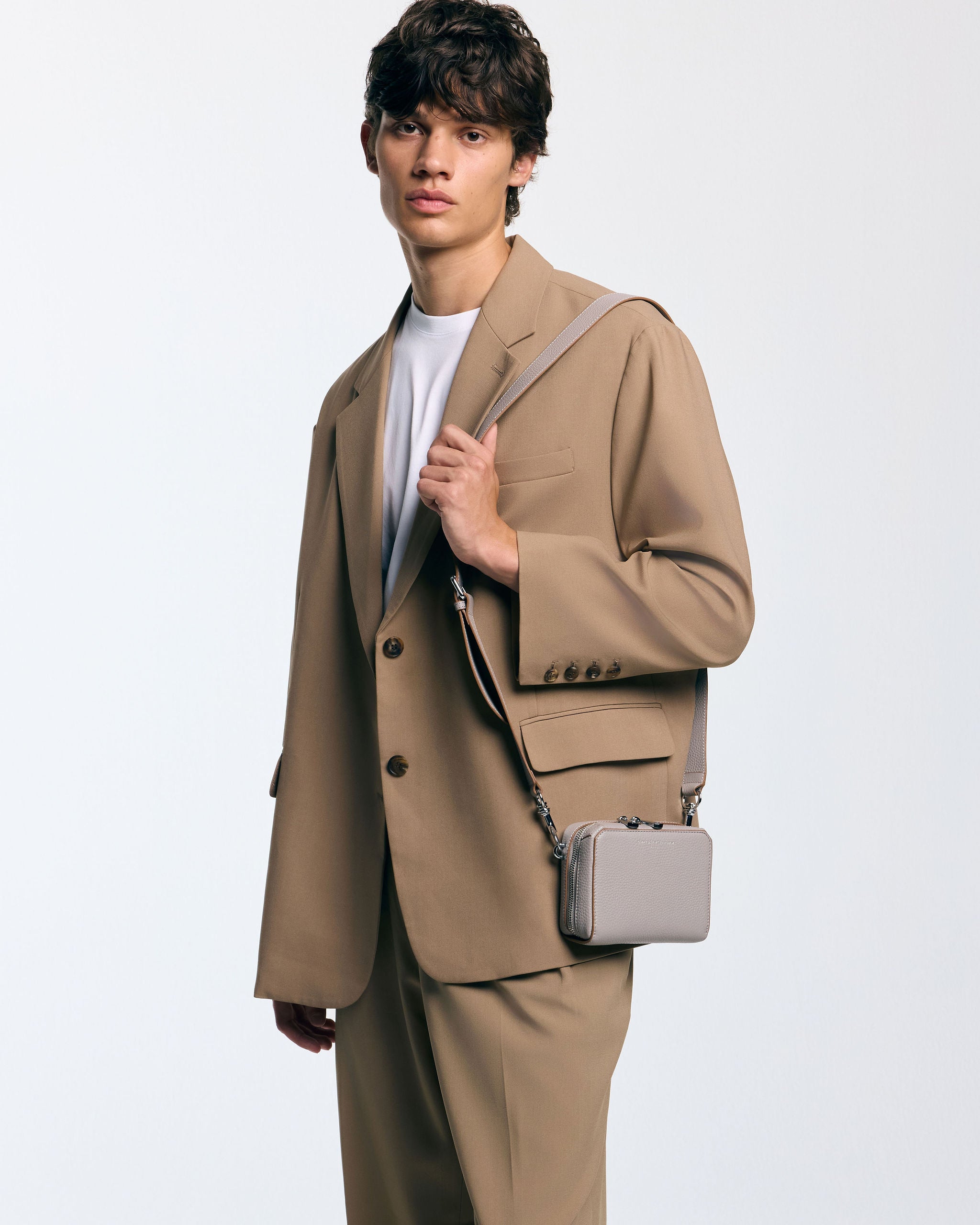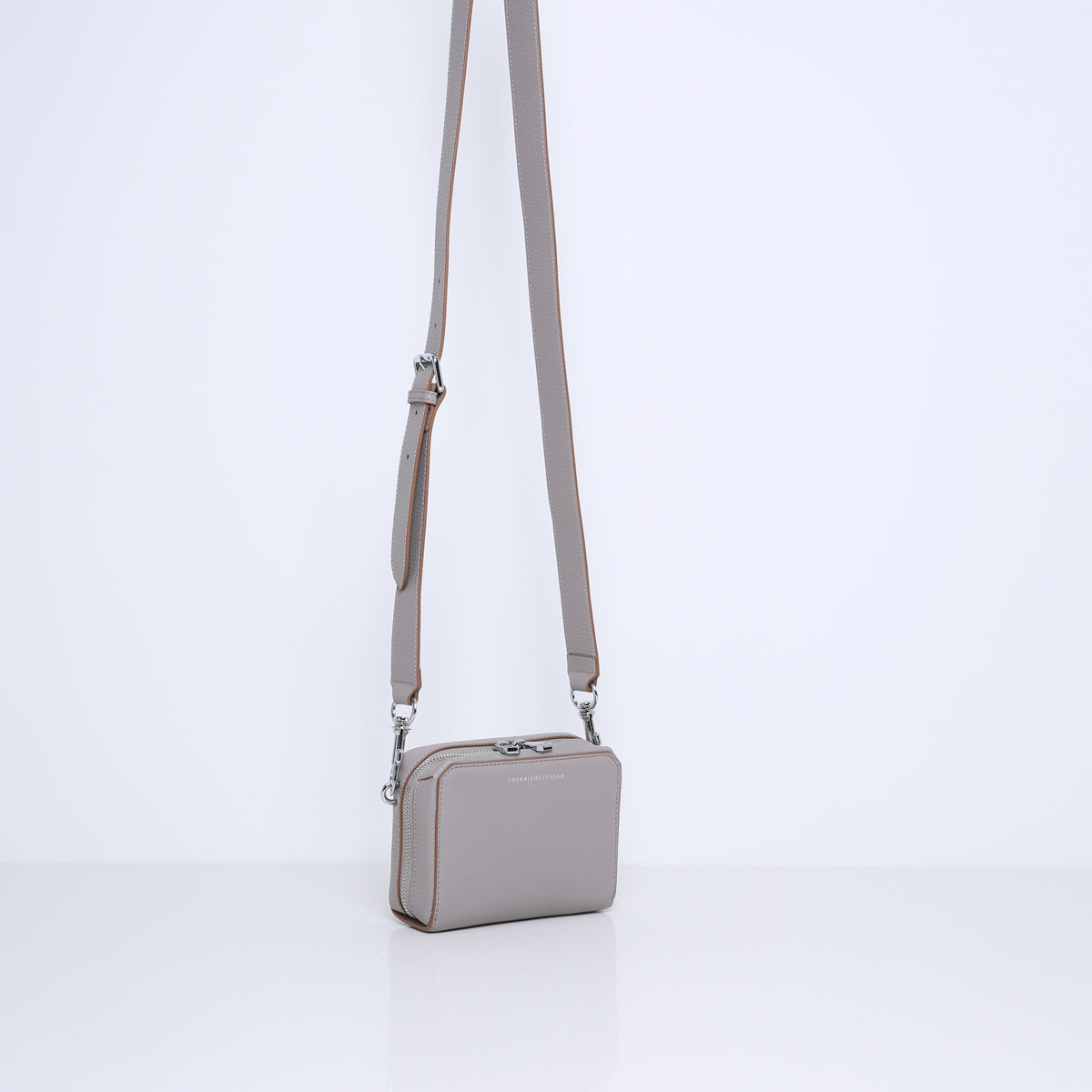 De tas is gemaakt van zacht en soepel rundleer. Beschikt over twee kleine binnenvakjes en is gevoerd met suedine (viscose) materiaal.
