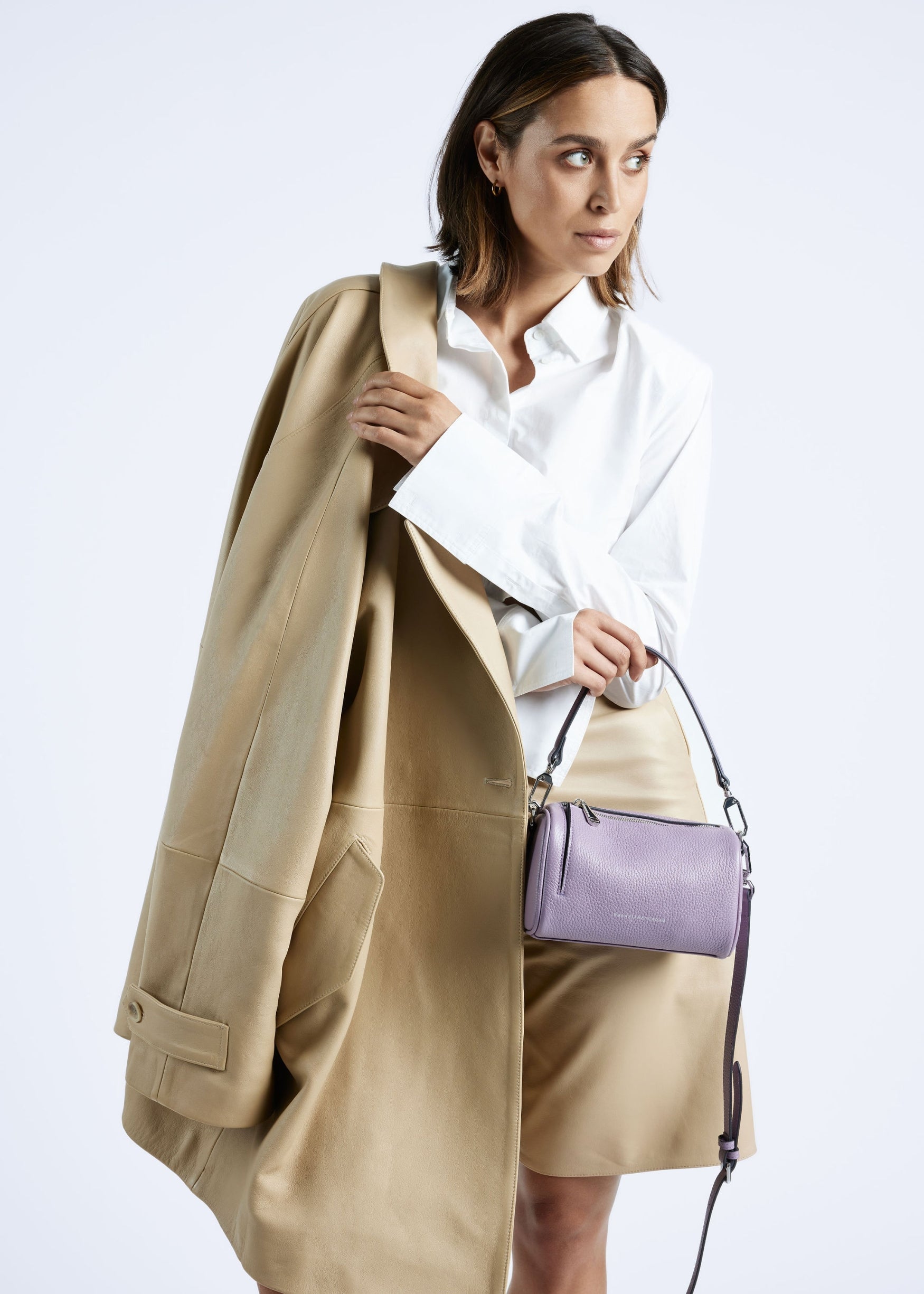 De FIGU is gesloten aan de bovenkant met rits en heeft een extra vouw aan de voorkant in het ontwerp voor een speels en eigentijds effect. Binnenin biedt de tas voldoende ruimte voor al je dagelijkse benodigdheden. Bevat geen binnenzakjes voor een ruimtelijk effect. De tas is gemaakt van zacht en soepel rundleer.
