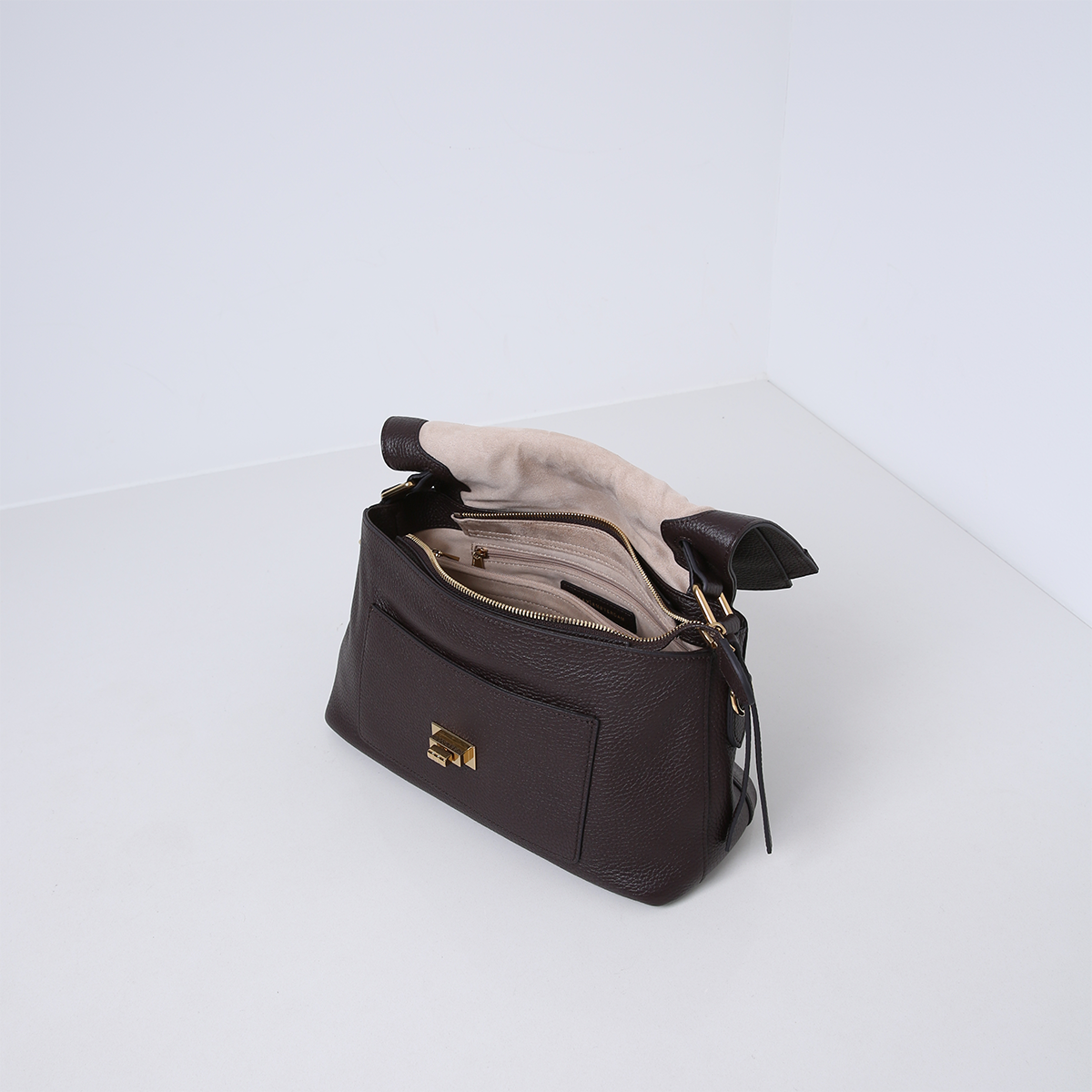 Met de afneembare, verstelbare leren schouderband kun je deze handtas ook als crossbody tas dragen.