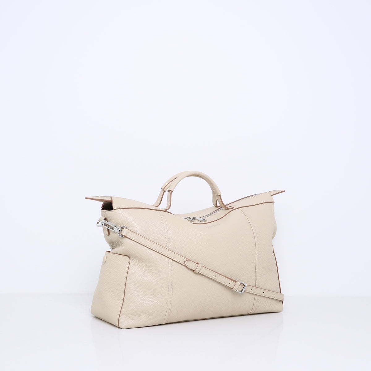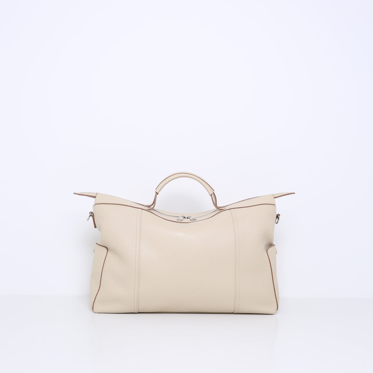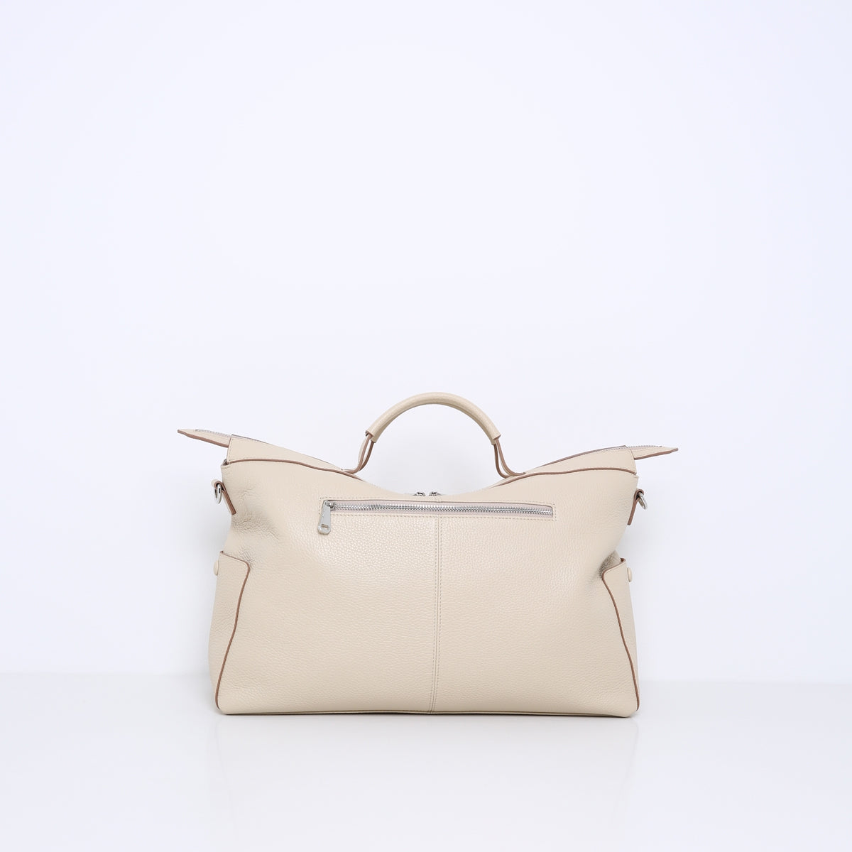 De tas is gemaakt van zacht soepel rundleer en is gesloten aan de bovenkant met rits.