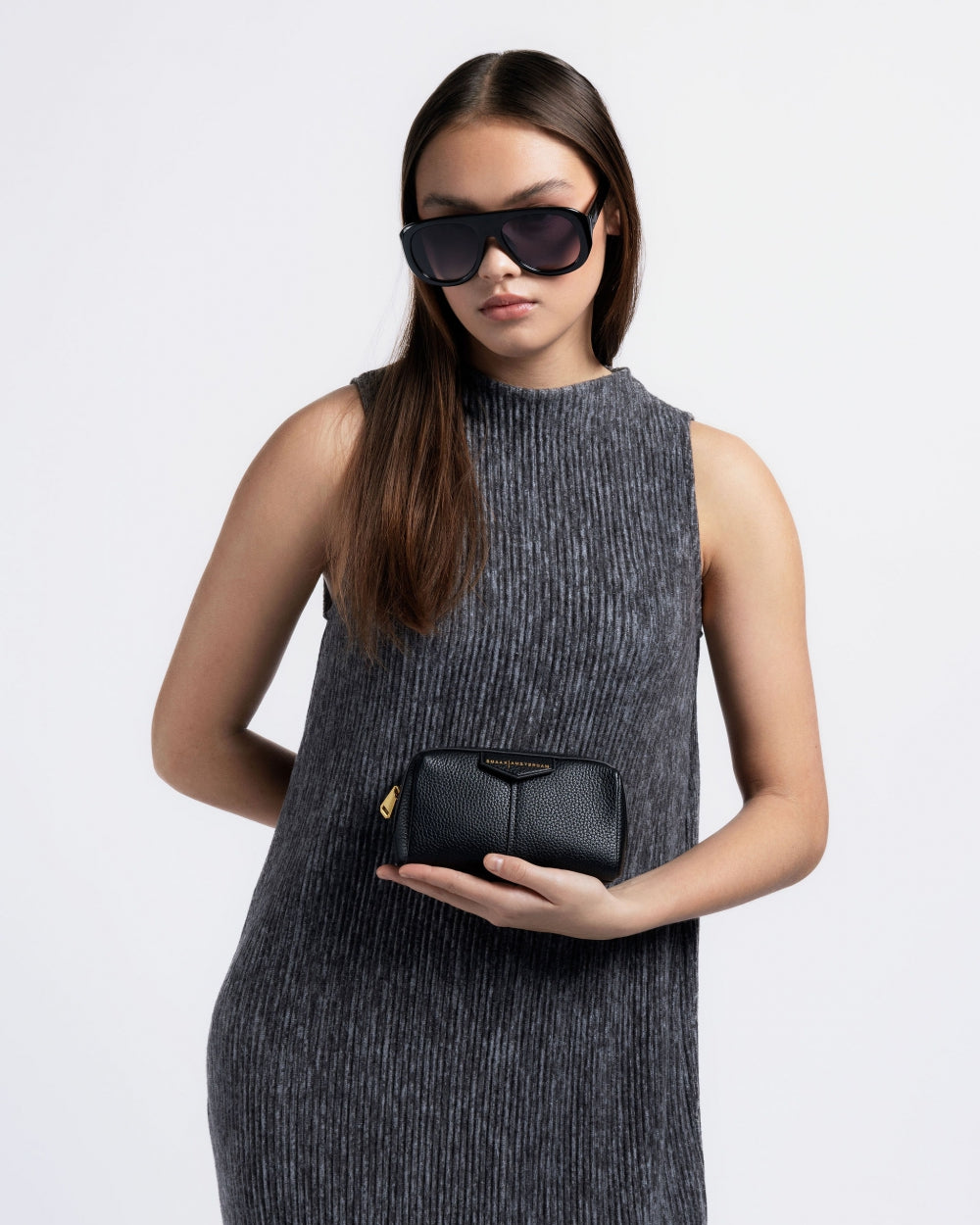 Gemaakt van hoogwaardig leer en afgewerkt met subtiele details is dit tasje een must-have voor in je handtas of als minimalistische clutch voor onderweg.