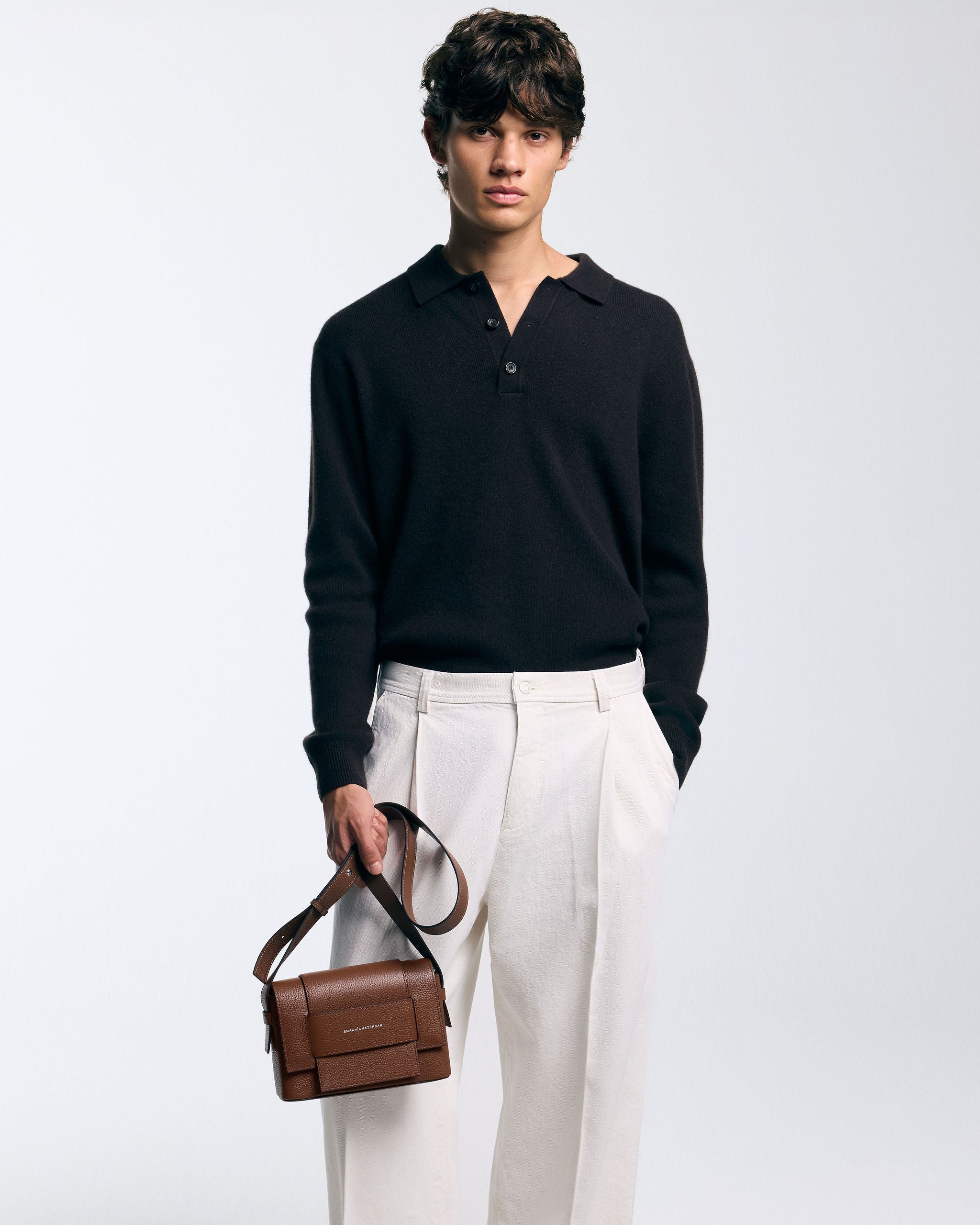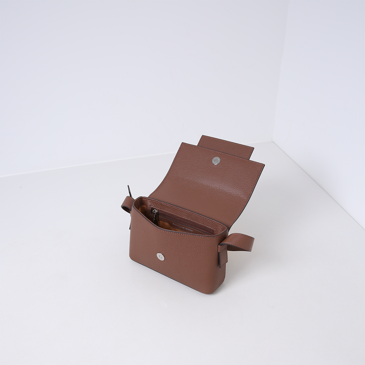 Gemaakt van luxueus zacht rundleer, opent de tas met een voorflap die is voorzien van een magnetische sluiting. De vaste schouderband is verstelbaar met subtiele drukknoopjes, zodat je hem op maat kunt dragen. Binnenin vind je meerdere handige vakjes, afgewerkt met een zachte suedine voering voor een luxueuze touch.