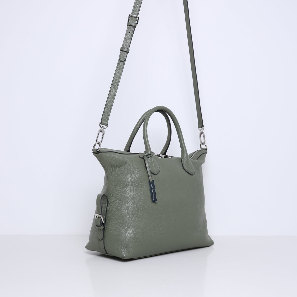 De tas is gemaakt van zacht en soepel rundleer. Beschikt over meerdere binnenvakjes en is gevoerd met suedine (viscose) materiaal. Met de afneembare, verstelbare leren schouderband kun je deze handtas ook als crossbody tas dragen.