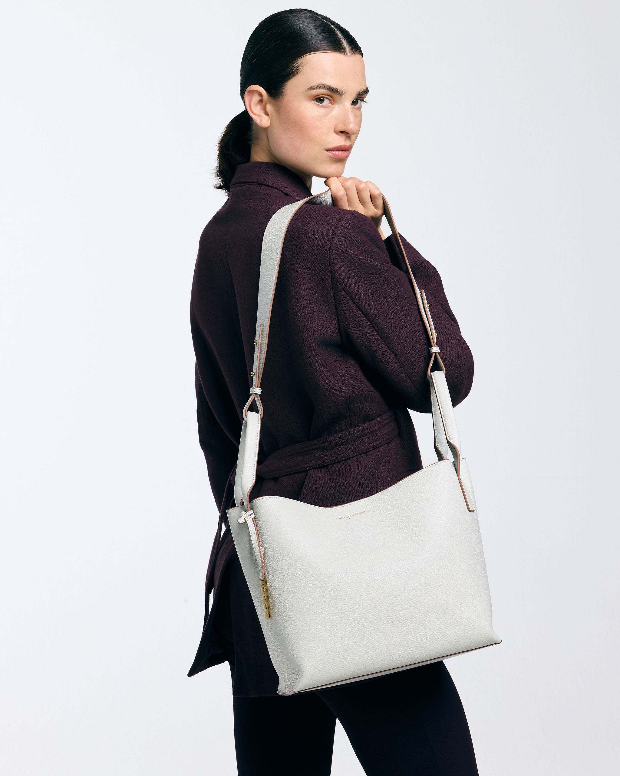De tas is open aan de bovenkant en sluit in het midden met een praktische magneetsluiting, waardoor je gemakkelijk toegang hebt tot je spullen en ze toch veilig kunt opbergen. Deze tas is ideaal voor dagelijks gebruik, waarbij je zowel mode als functionaliteit wilt combineren.