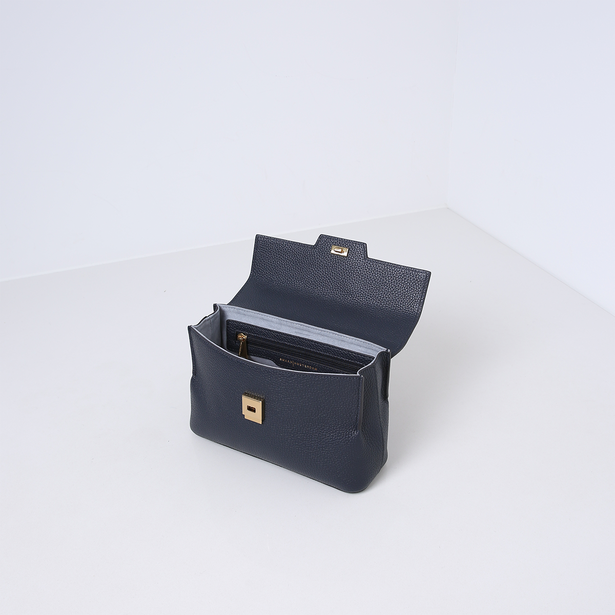 De FLORA heeft een kort handvat en een afneembare leren crossbody band die je aan de bovenkant bevestigd. De handtas gaat aan de voorkant open met een kliksluiting. Er is genoeg ruimte voor al je essentials zoals een telefoon, portemonnee, (zonne)bril en sleutels. Door de rechthoekige en open vorm kun je makkelijk en overzichtelijk bij je spullen.