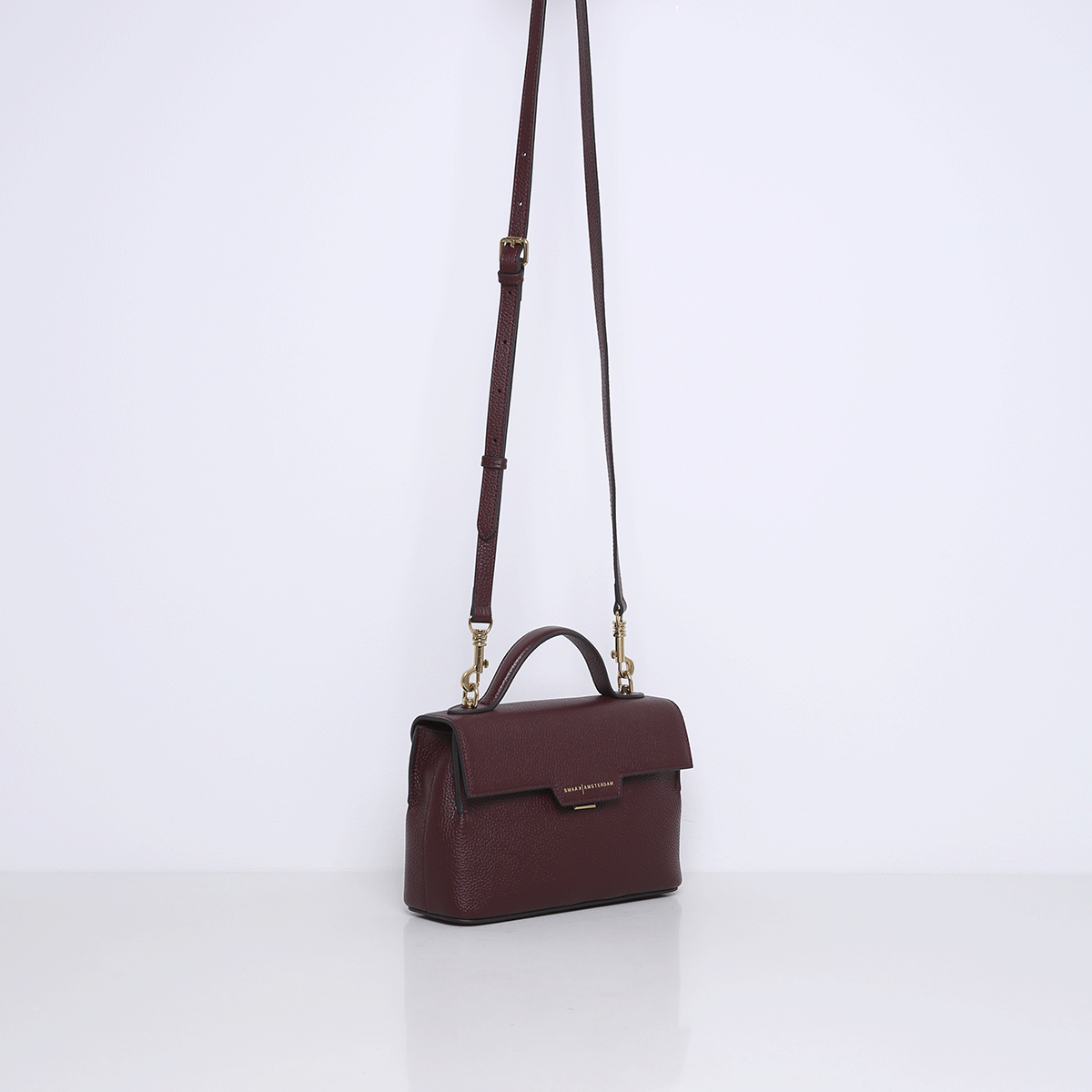 De FLORA heeft een kort handvat en een afneembare leren crossbody band die je aan de bovenkant bevestigd. De handtas gaat aan de voorkant open met een kliksluiting. Er is genoeg ruimte voor al je essentials zoals een telefoon, portemonnee, (zonne)bril en sleutels. Door de rechthoekige en open vorm kun je makkelijk en overzichtelijk bij je spullen.