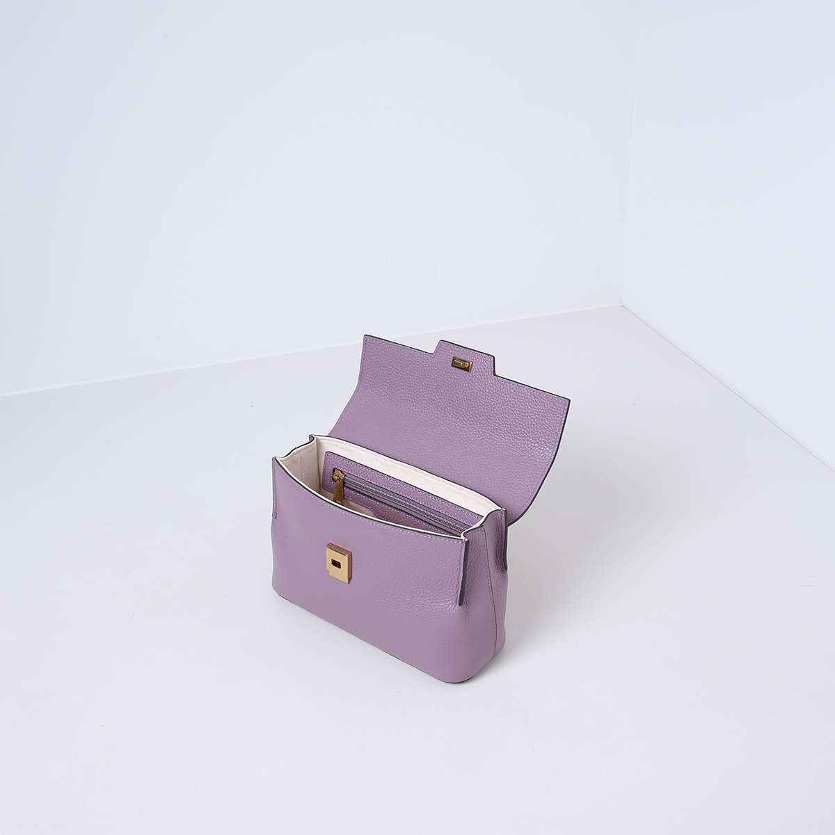 De FLORA heeft een kort handvat en een afneembare leren crossbody band die je aan de bovenkant bevestigd. De handtas gaat aan de voorkant open met een kliksluiting. Er is genoeg ruimte voor al je essentials zoals een telefoon, portemonnee, (zonne)bril en sleutels. Door de rechthoekige en open vorm kun je makkelijk en overzichtelijk bij je spullen.