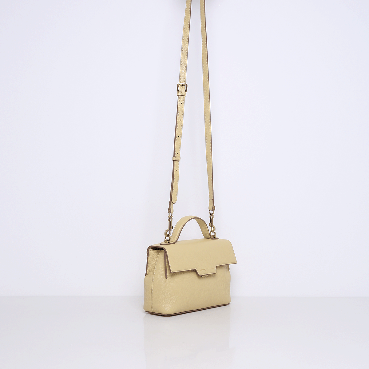 De FLORA heeft een kort handvat en een afneembare leren crossbody band die je aan de bovenkant bevestigd. De handtas gaat aan de voorkant open met een kliksluiting. Er is genoeg ruimte voor al je essentials zoals een telefoon, portemonnee, (zonne)bril en sleutels. Door de rechthoekige en open vorm kun je makkelijk en overzichtelijk bij je spullen.