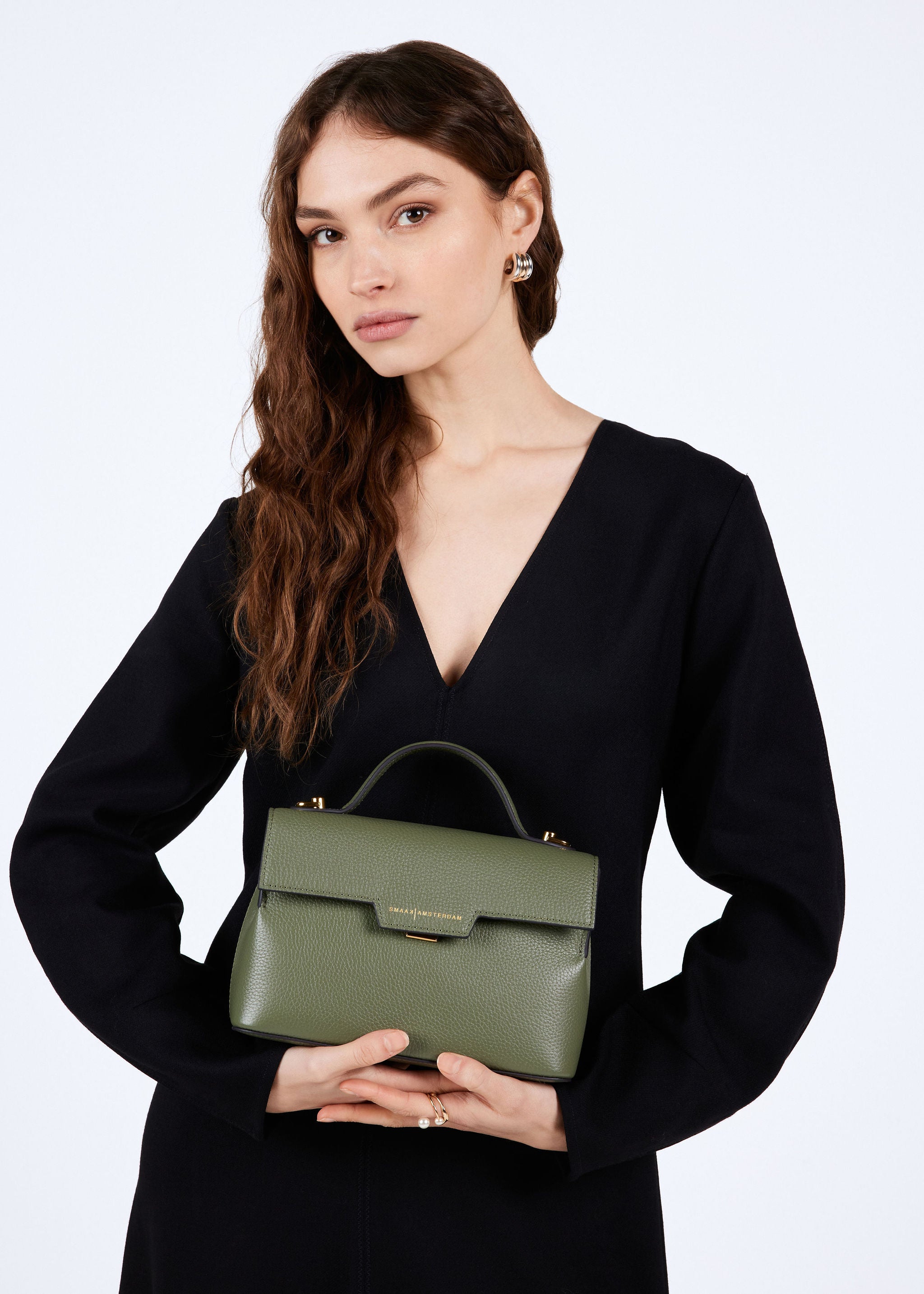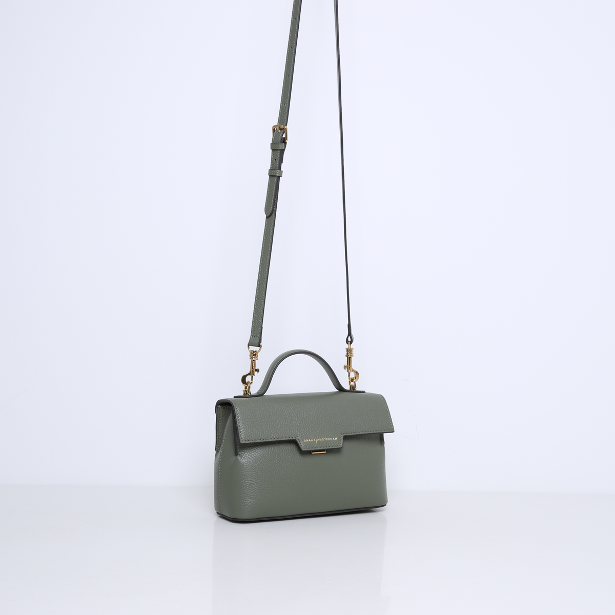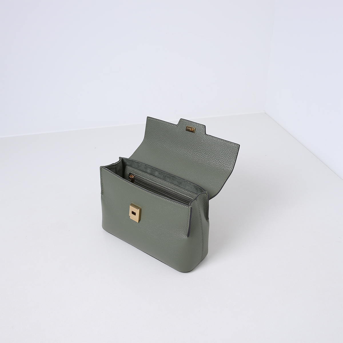 De FLORA heeft een kort handvat en een afneembare leren crossbody band die je aan de bovenkant bevestigd. De handtas gaat aan de voorkant open met een kliksluiting. Er is genoeg ruimte voor al je essentials zoals een telefoon, portemonnee, (zonne)bril en sleutels. Door de rechthoekige en open vorm kun je makkelijk en overzichtelijk bij je spullen.