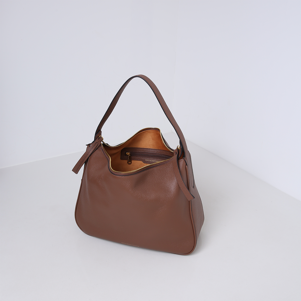 De MONROE is het grotere zusje van onze Daniel tas, een elegante mediumformaat hobo tas die stijl en functionaliteit moeiteloos combineert. De tas is prachtig afgewerkt met een luxe goudkleurige rits en heeft een vaste korte strap, waardoor je haar comfortabel over de schouder kunt dragen. Daarnaast wordt de tas geleverd met een extra lange strap, zodat je haar ook perfect crossbody kunt dragen. Het verfijnde detail aan de zijkant laat de MONROE echt opvallen en geeft elke outfit een chique, unieke touch.