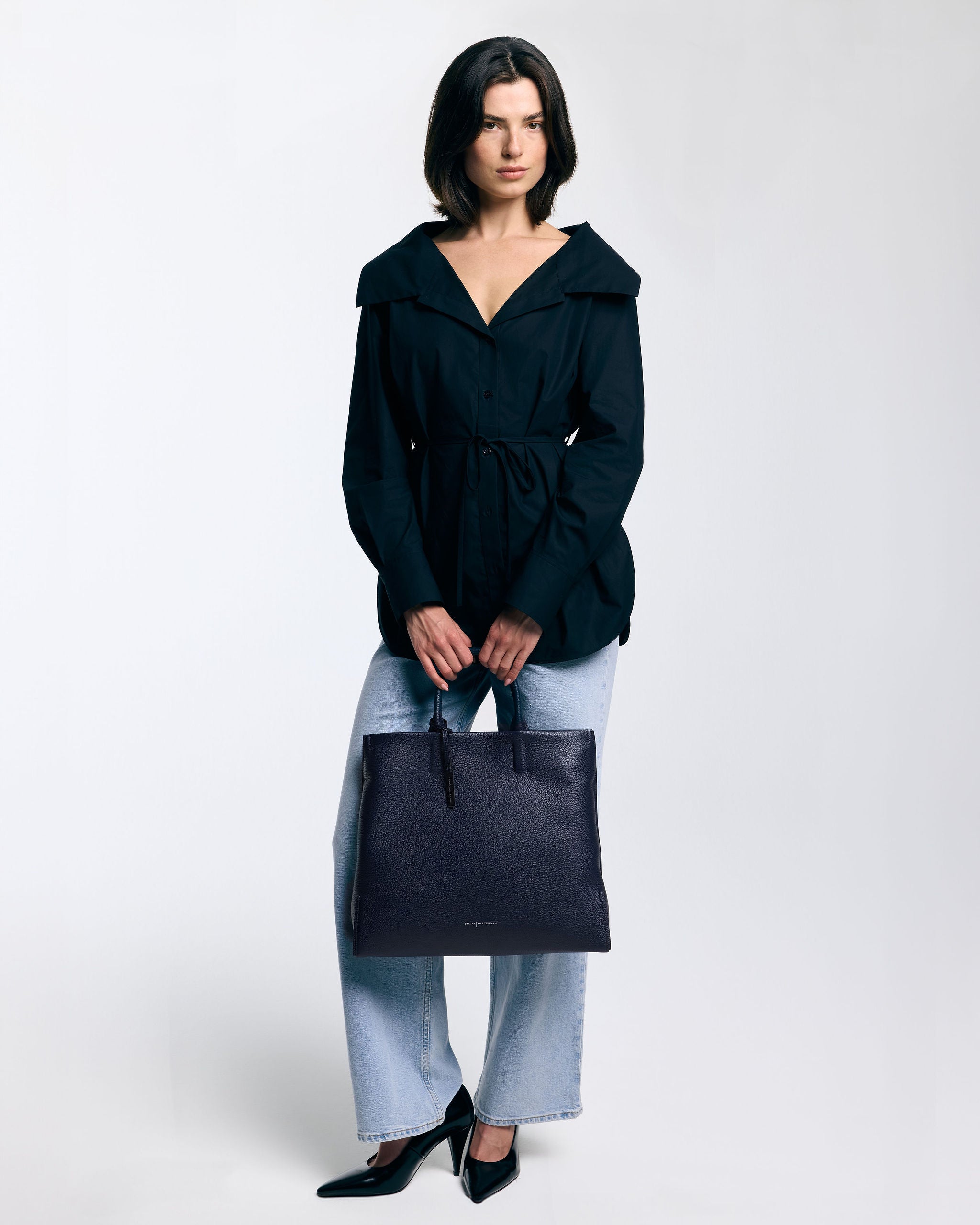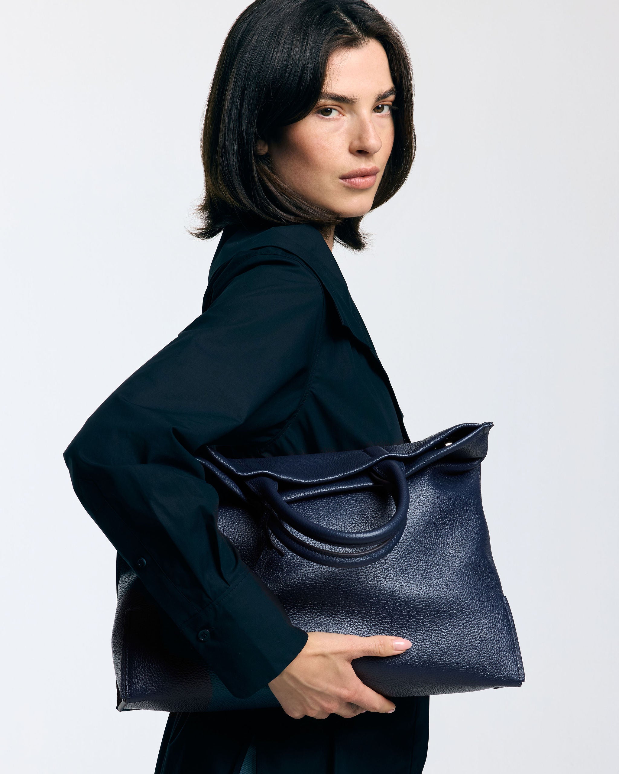 Het tijdloze en veelzijdige ontwerp van de middelgrote leren handtas maakt hem geschikt voor diverse gelegenheden, van werk tot casual uitjes en zelfs avondactiviteiten. Je kan de tas dubbelvouwen waardoor je deze nonchalant als een grote clutch kan dragen; een onmisbaar accessoire in de gaderobe van elke stijlbewuste persoon.