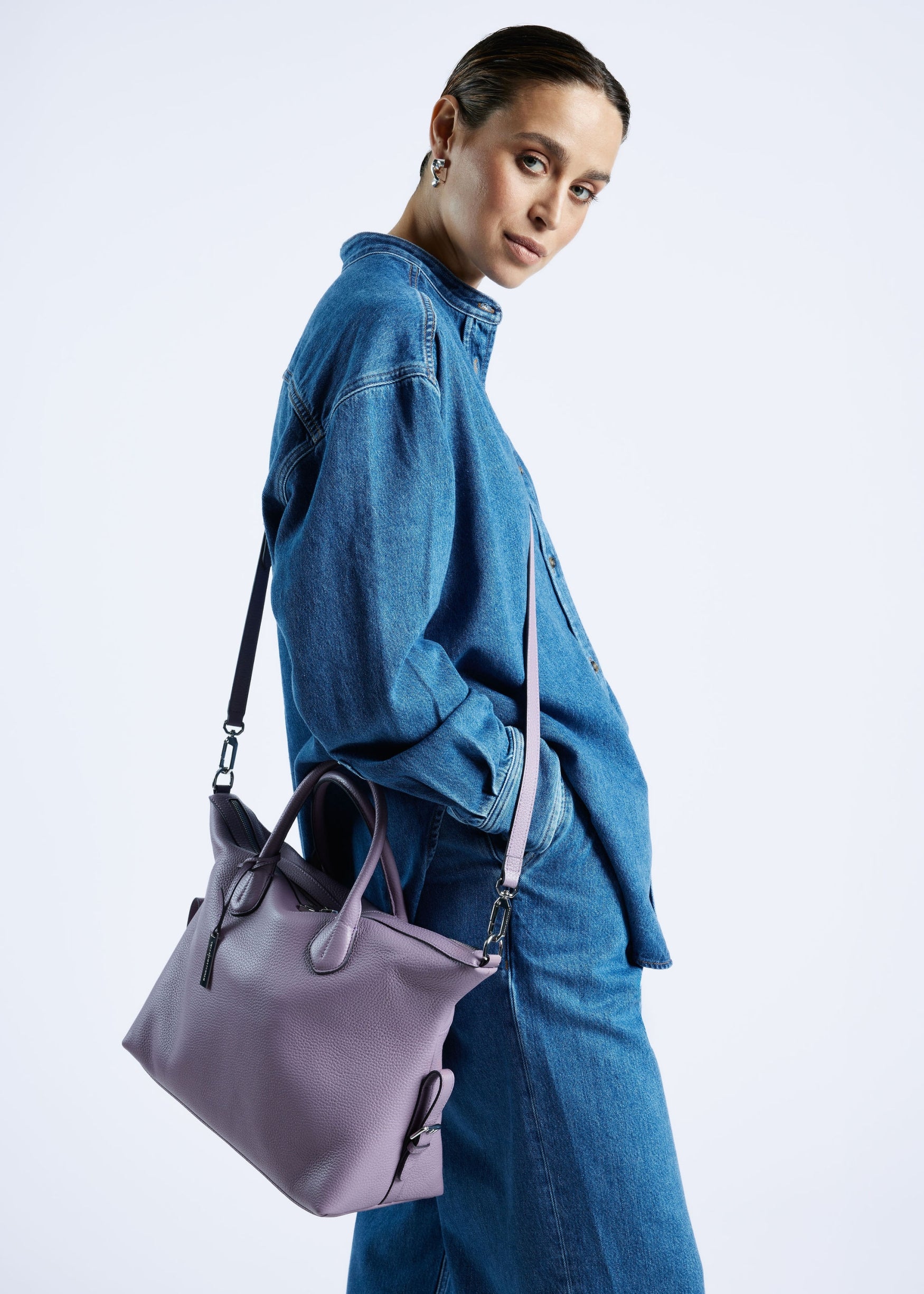 De tas is gemaakt van zacht en soepel rundleer. Beschikt over meerdere binnenvakjes en is gevoerd met suedine (viscose) materiaal. Met de afneembare, verstelbare leren schouderband kun je deze handtas ook als crossbody tas dragen.