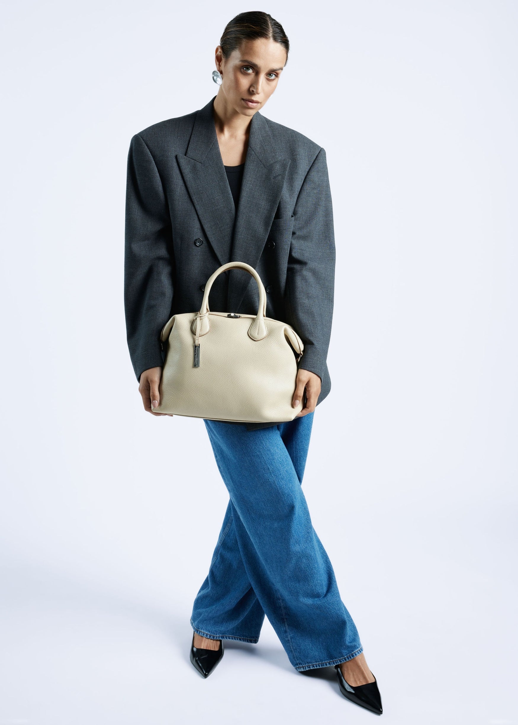 De tas bevat een extra vak met rits aan de achterkant en is volledig gesloten met een rits aan de bovenkant. Unieke details aan dit model zijn de gespen aan de zijkanten die je open of dicht kunt gebruiken om extra ruimte te creëren en speelsheid in design. Zo past er een 13 Inch laptop in wanneer deze open zijn en het model ietwat rechthoekig wordt.