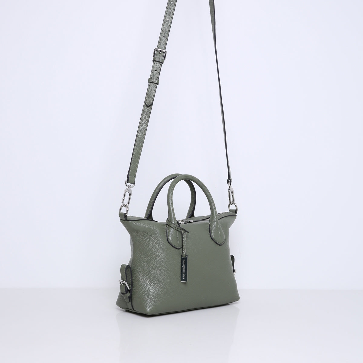 De tas is gemaakt van zacht en soepel rundleer. Beschikt over meerdere binnenvakjes en is gevoerd met suedine (viscose) materiaal. Met de afneembare, verstelbare leren schouderband kun je deze handtas ook als crossbody tas dragen.