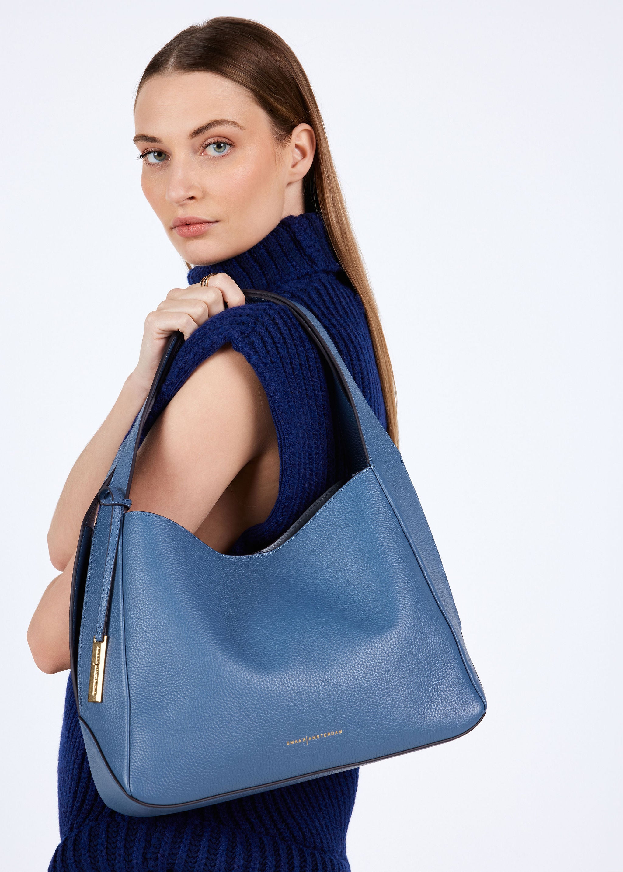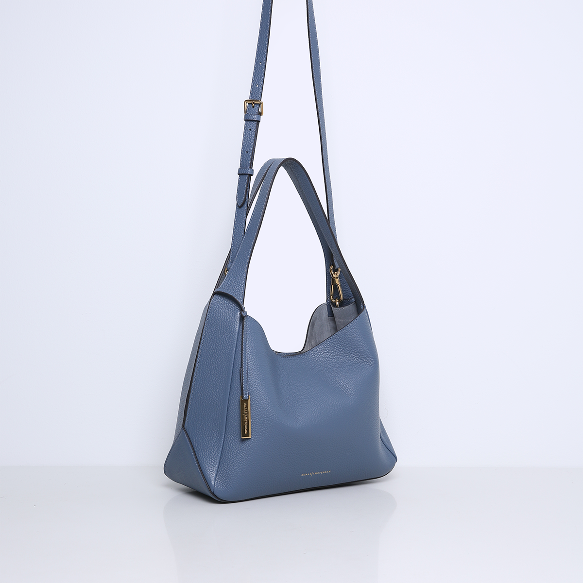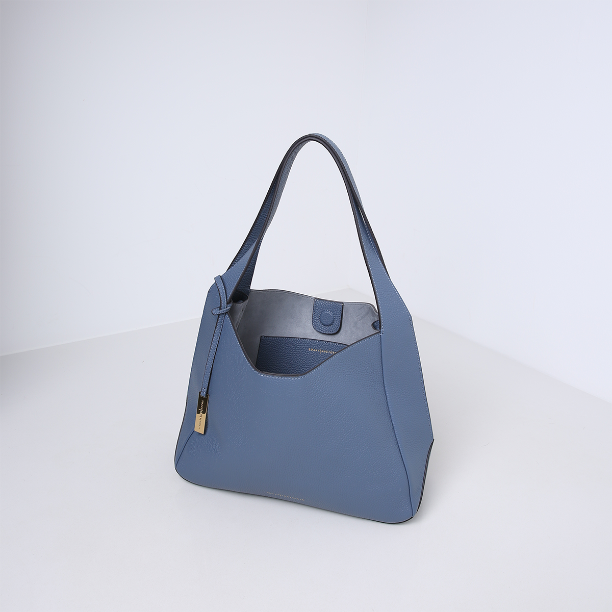 De handtas heeft twee stevige leren hengsels die naadloos overgaan aan de zijkanten van de tas en daar eindigen in een stijlvolle split. Deze splits voegen niet alleen een verfijnd detail toe, maar zorgen ook voor extra flexibiliteit en comfort bij het dragen. Dit grote model is perfect voor dagelijks gebruik, met voldoende ruimte voor al je essentiële spullen inclusief een 13 Inch laptop zonder hoes. De tas kan zowel in de hand als crossbody gedragen worden dankzij een afneembare en verstelbare schouderriem.