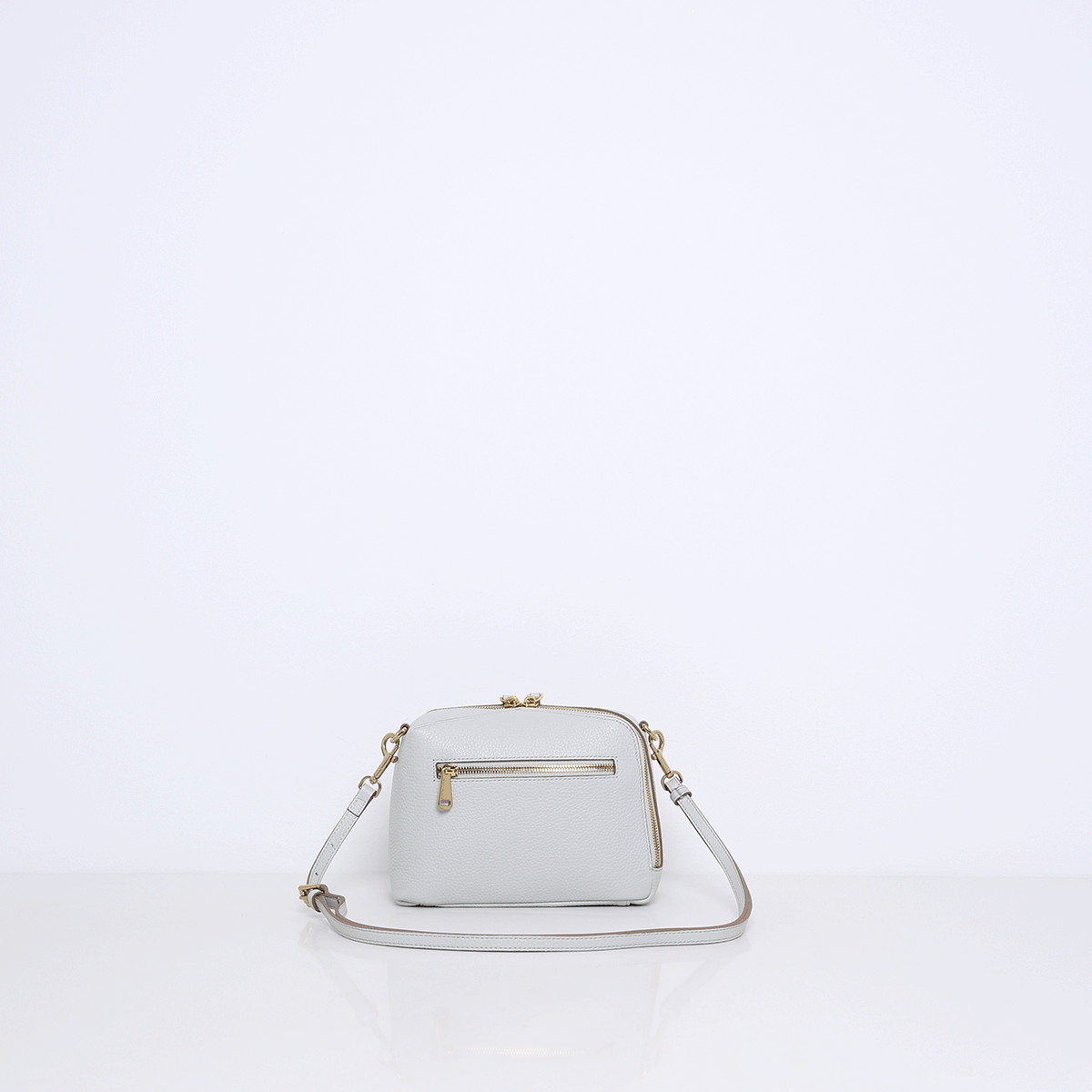 De tas heeft een korte stoffen schouderband met een lengte van 65 cm en een lange leren crossbody band verstelbaar tot 120 cm.