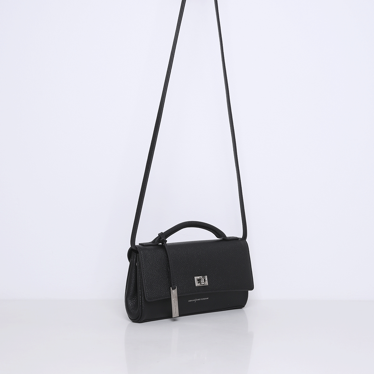 De CHARLTON wordt geleverd met een afneembare lange strap, zodat je haar ook comfortabel over de schouder of crossbody kunt dragen. De strap is niet verstelbaar, wat bijdraagt aan de strakke en minimalistische look van de tas.