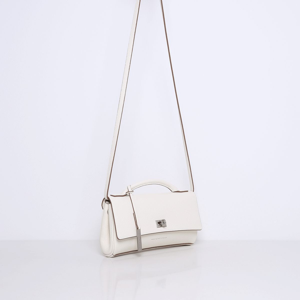 De CHARLTON wordt geleverd met een afneembare lange strap, zodat je haar ook comfortabel over de schouder of crossbody kunt dragen. De strap is niet verstelbaar, wat bijdraagt aan de strakke en minimalistische look van de tas.