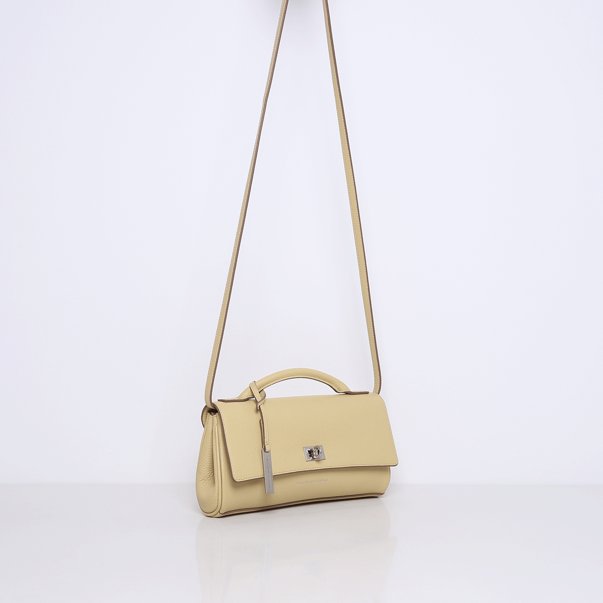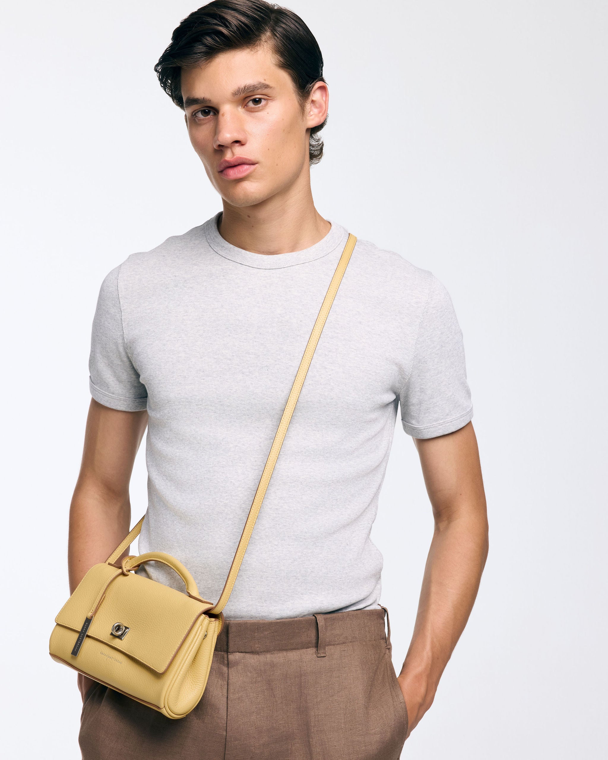De CHARLTON wordt geleverd met een afneembare lange strap, zodat je haar ook comfortabel over de schouder of crossbody kunt dragen. De strap is niet verstelbaar, wat bijdraagt aan de strakke en minimalistische look van de tas.