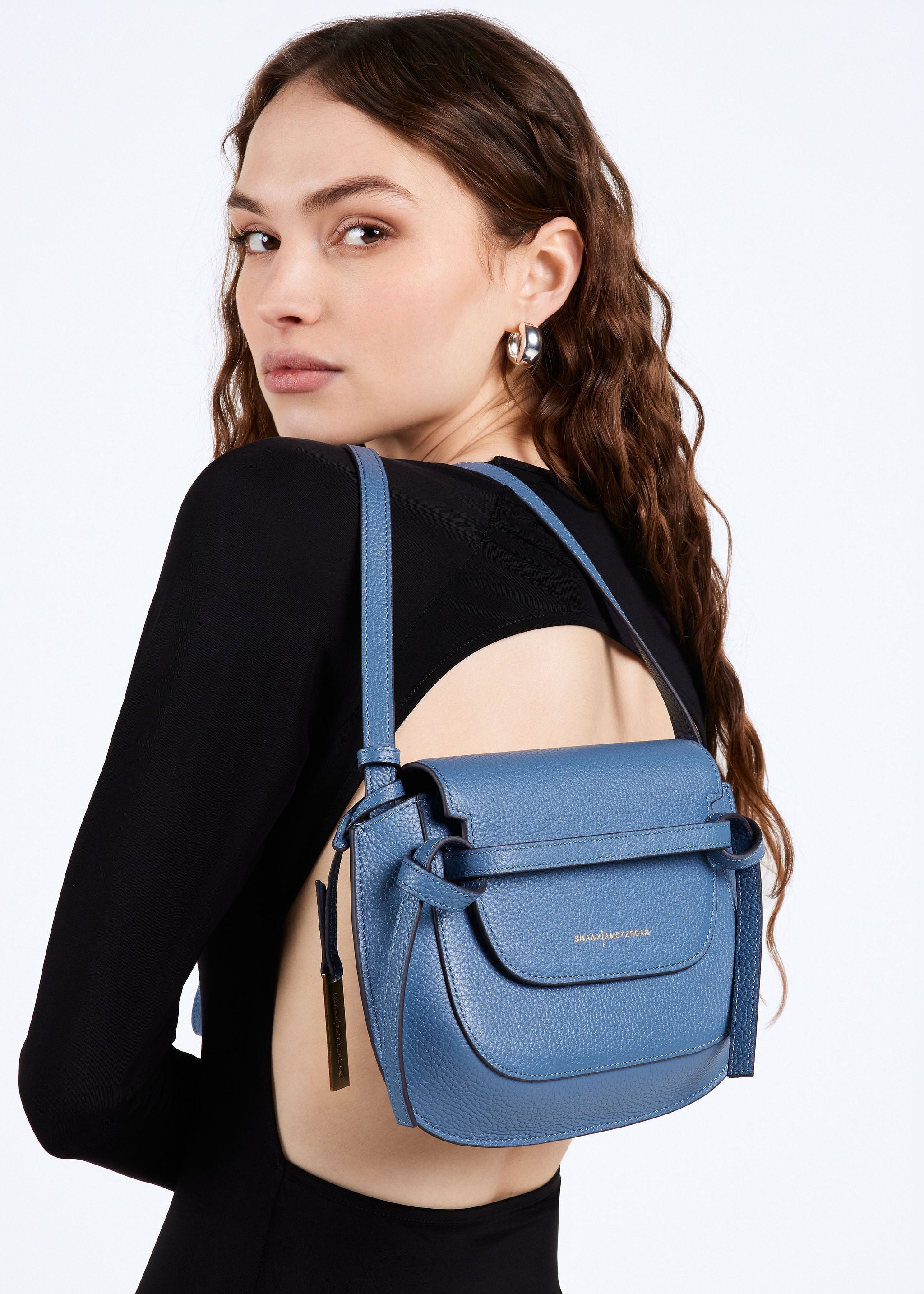 De tas is gemaakt van zacht en soepel rundleer. Beschikt over meerdere binnenvakjes en is gevoerd met stof (viscose). De leren schouderband is verstelbaar in lengte en zit vast aan de tas.