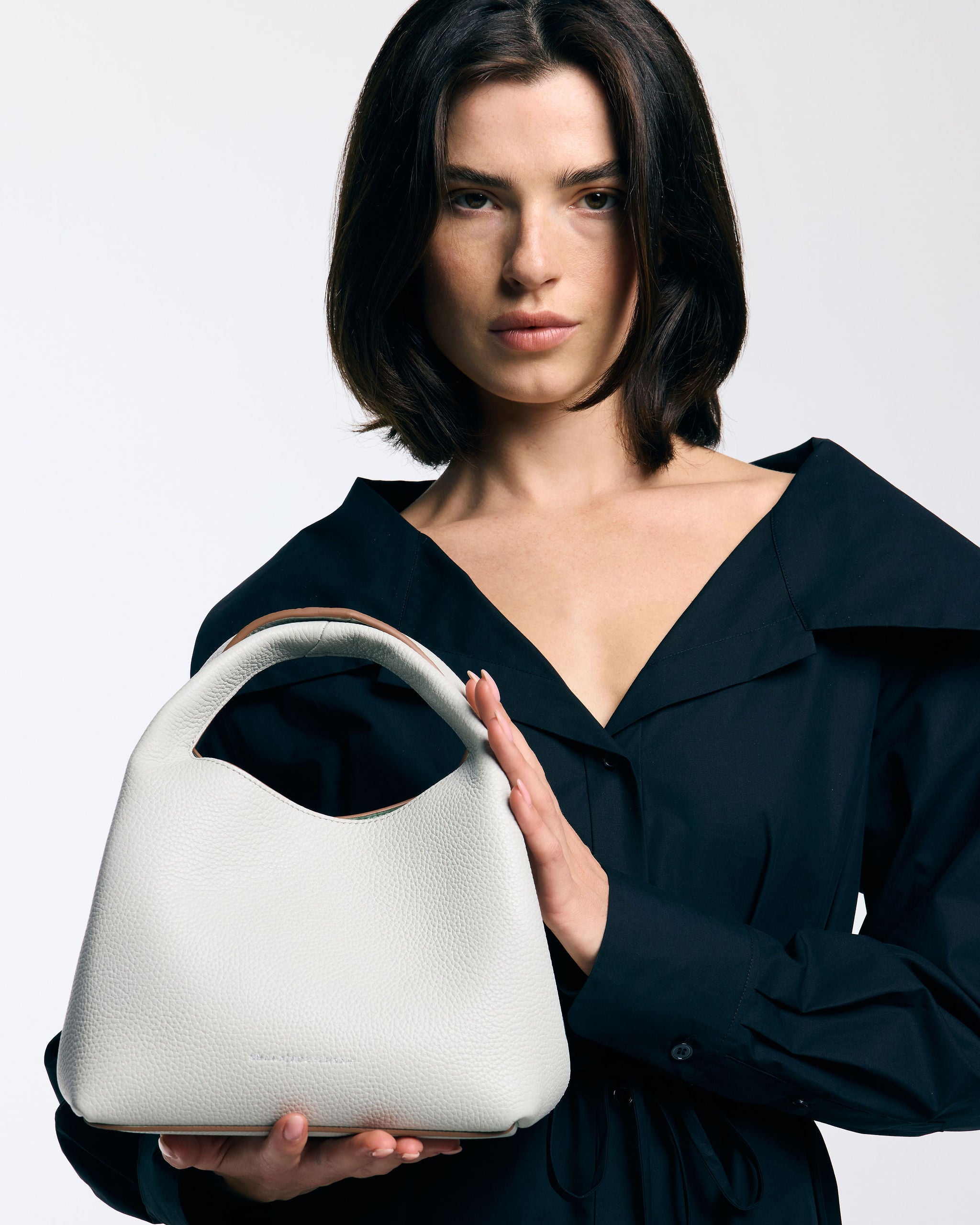 De zilverkleurige details zorgen voor een verfijnd contrast met de kleur van het leer en voering, terwijl het compacte formaat je essentials stijlvol bij elkaar houdt. Draag haar aan het handvat voor een classy uitstraling, of crossbody voor een effortless cool vibe.