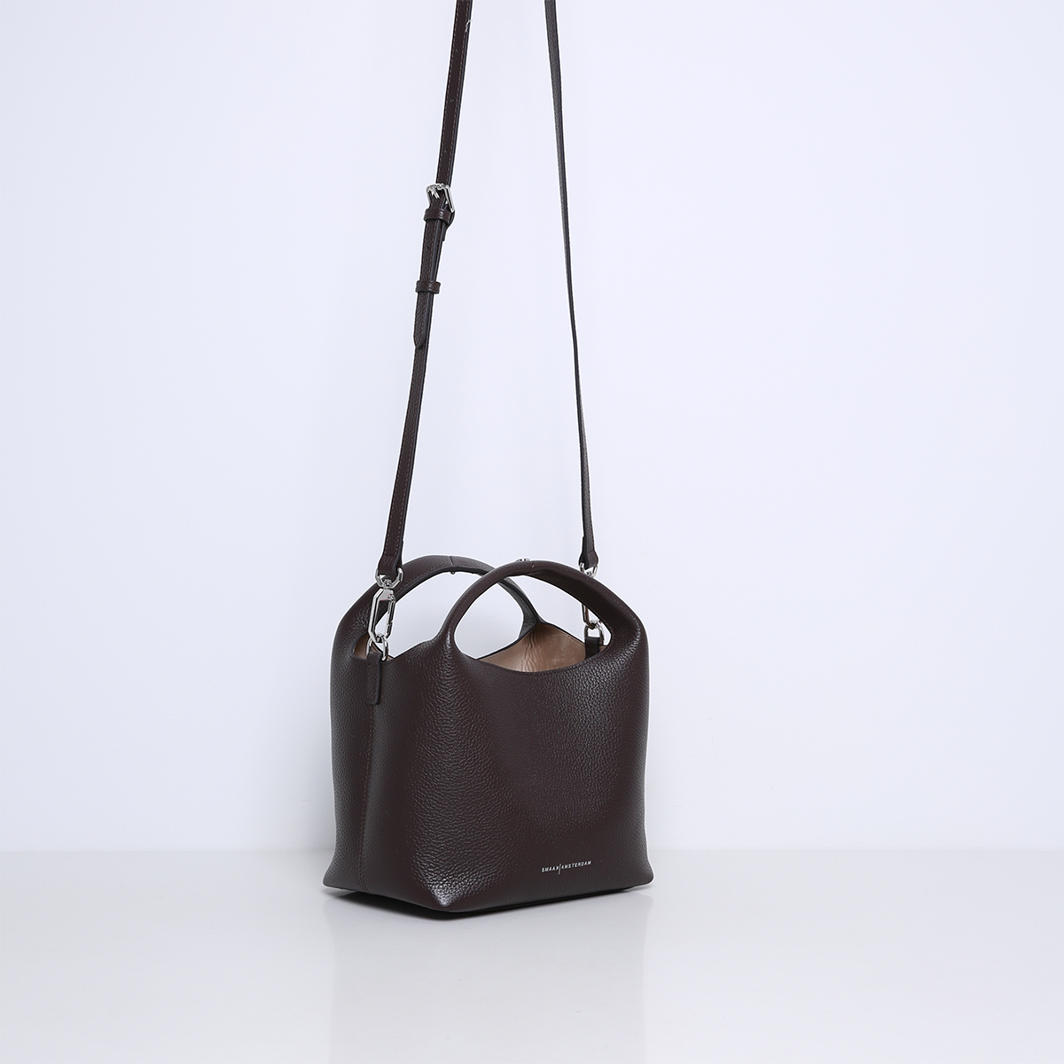 De zilverkleurige details zorgen voor een verfijnd contrast met de kleur van het leer en voering, terwijl het compacte formaat je essentials stijlvol bij elkaar houdt. Draag haar aan het handvat voor een classy uitstraling, of crossbody voor een effortless cool vibe.