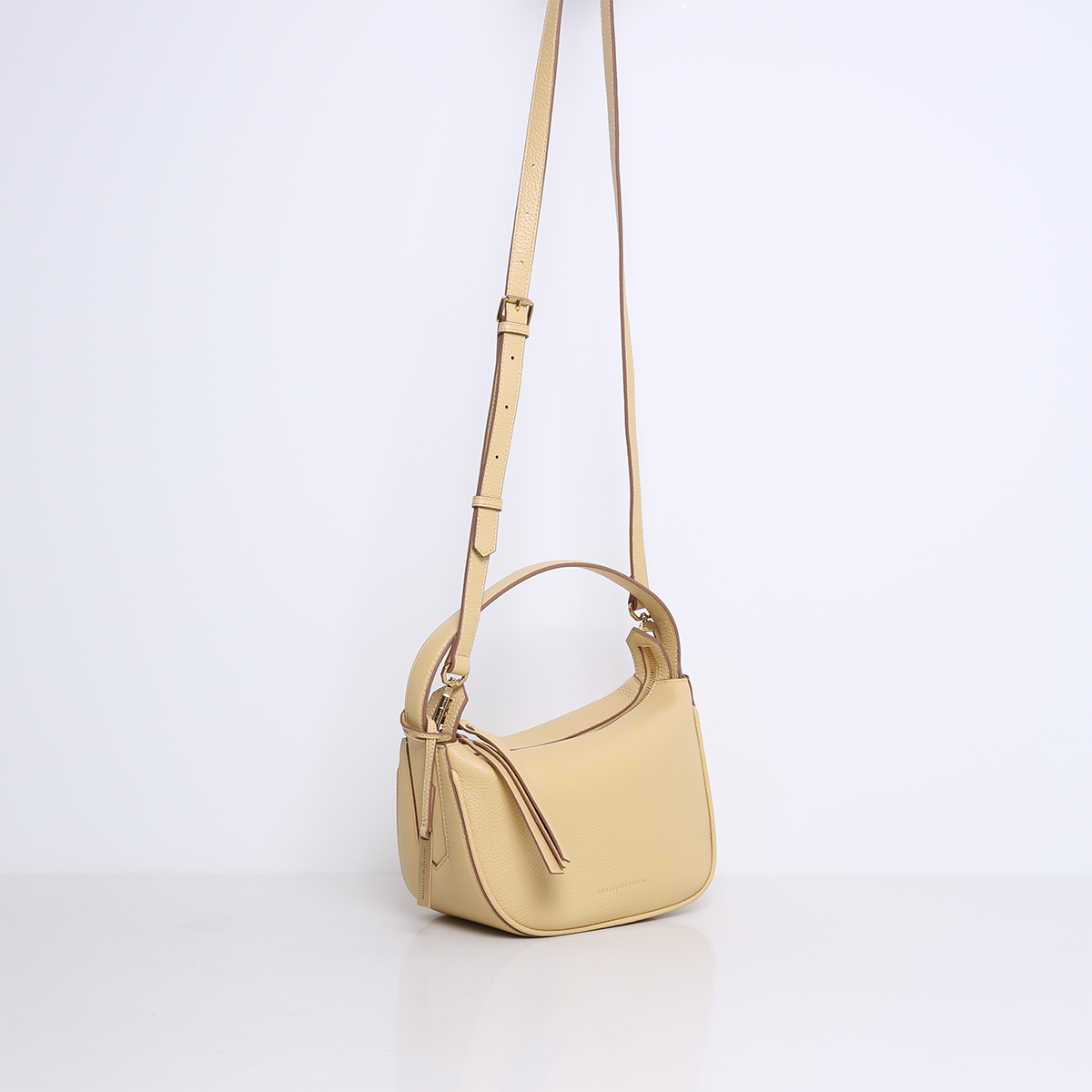 De DANIEL is het kleinere zusje van onze elegante MONROE tas, een compacte hobo tas die stijl en gebruiksgemak perfect combineert. De tas is verfijnd afgewerkt met een luxe goudkleurige rits en heeft een vaste korte strap, zodat je haar comfortabel over de schouder kunt dragen. Daarnaast wordt de tas geleverd met een extra lange strap, waardoor je haar ook makkelijk crossbody kunt dragen.