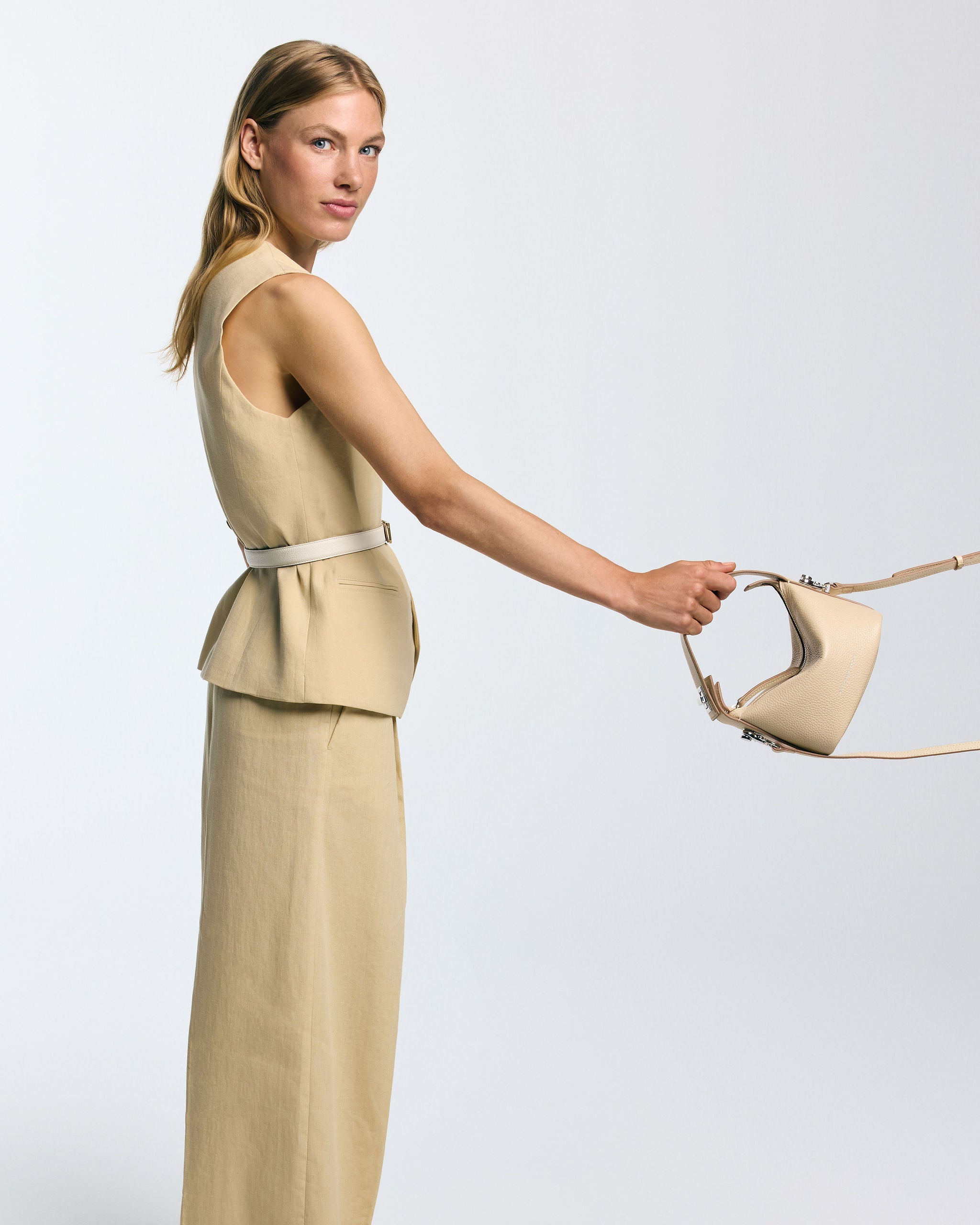 De tas is gemaakt van zacht en soepel rundleer. Heeft geen extra binnenvak en is gevoerd met suedine (viscose) materiaal. Met de afneembare, verstelbare schouderband kun je deze handtas ook als crossbody tas dragen.