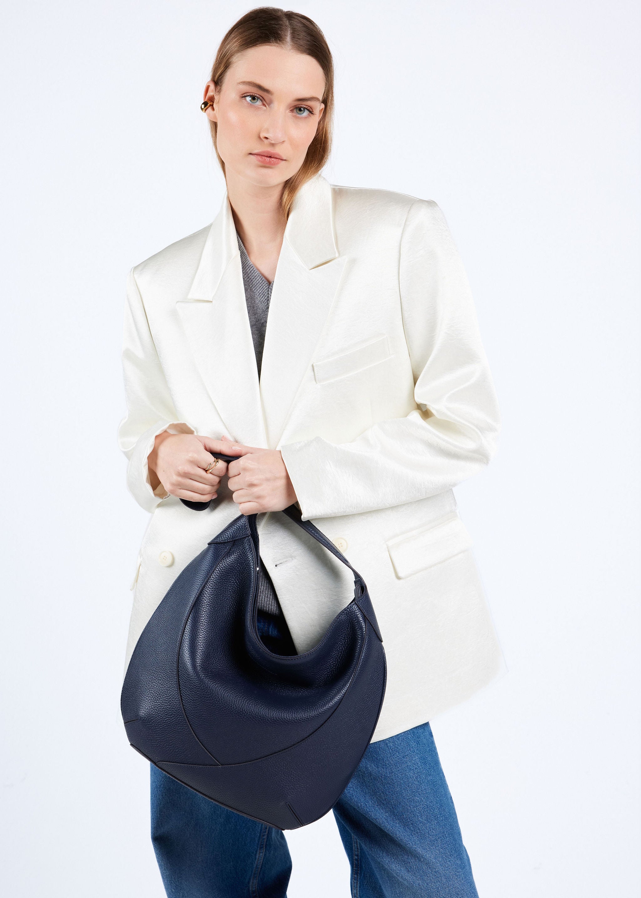 De DREW leren shopper combineert moeiteloos stijl met functionaliteit. Het middelgrote formaat biedt voldoende ruimte voor je dagelijkse essentials, terwijl het unieke ontwerp met een halve ronde vorm en geometrische lijnen zowel de voor- als achterkant een eigentijdse, grafische uitstraling geeft.