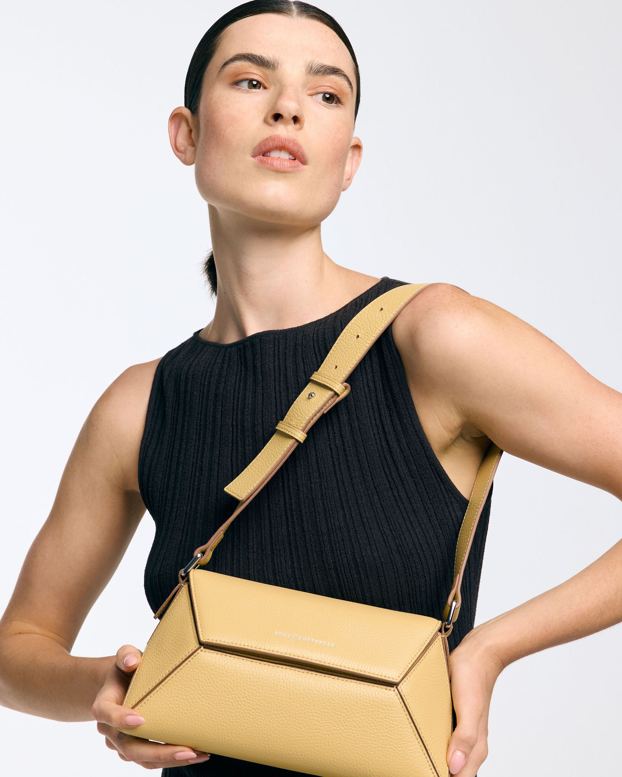 De schouderriem is verstelbaar in lengte en wordt geleverd met een extra verlengstuk, zodat je de tas ook schuin over je lichaam kunt dragen voor extra comfort en stijl. Binnenin is er een handig extra vak met rits voor het veilig opbergen van je kleinere spullen. Deze tas is de perfecte balans tussen elegantie, moderniteit en speelsheid.