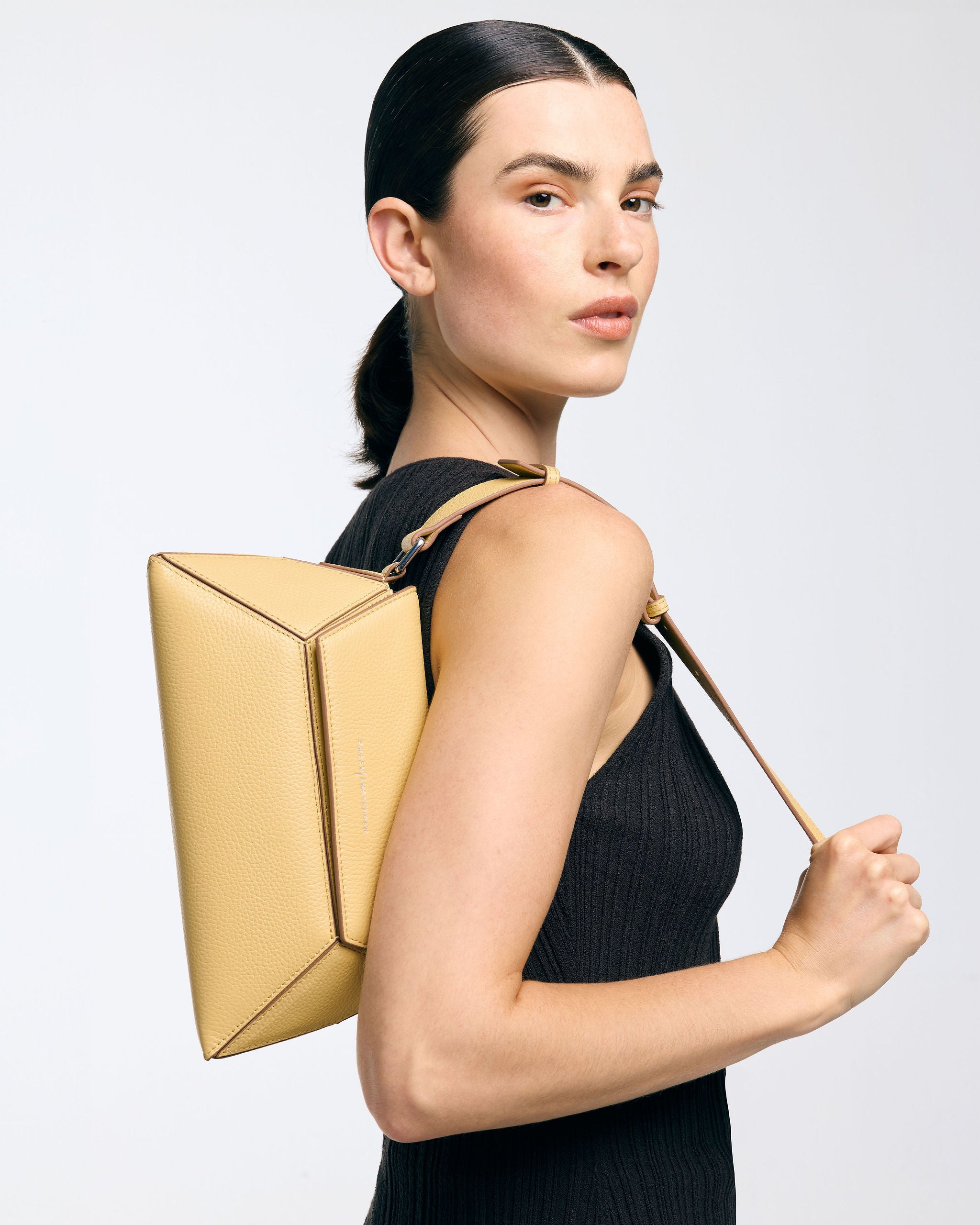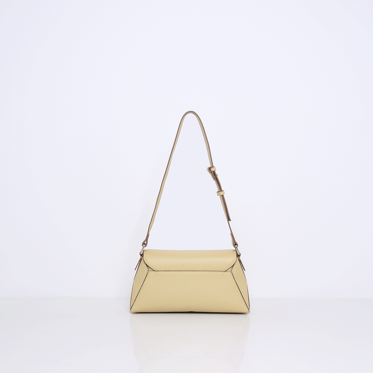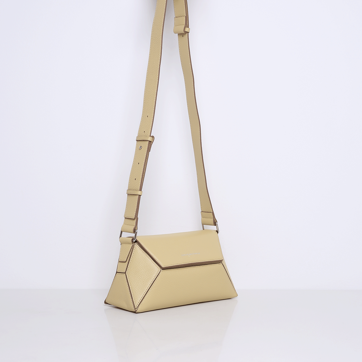 Het stevige, rechthoekige model is breed maar compact genoeg om elegant te dragen, of je hem nu over je schouder hangt of in de hand houdt. De tas heeft een interessante puzzelachtige uitstraling door de lijnen in het leer, wat het ontwerp een modern en verfijnd karakter geeft. De bovenkant opent met een onzichtbare magneetsluiting, wat zorgt voor een strakke en gestroomlijnde afwerking.