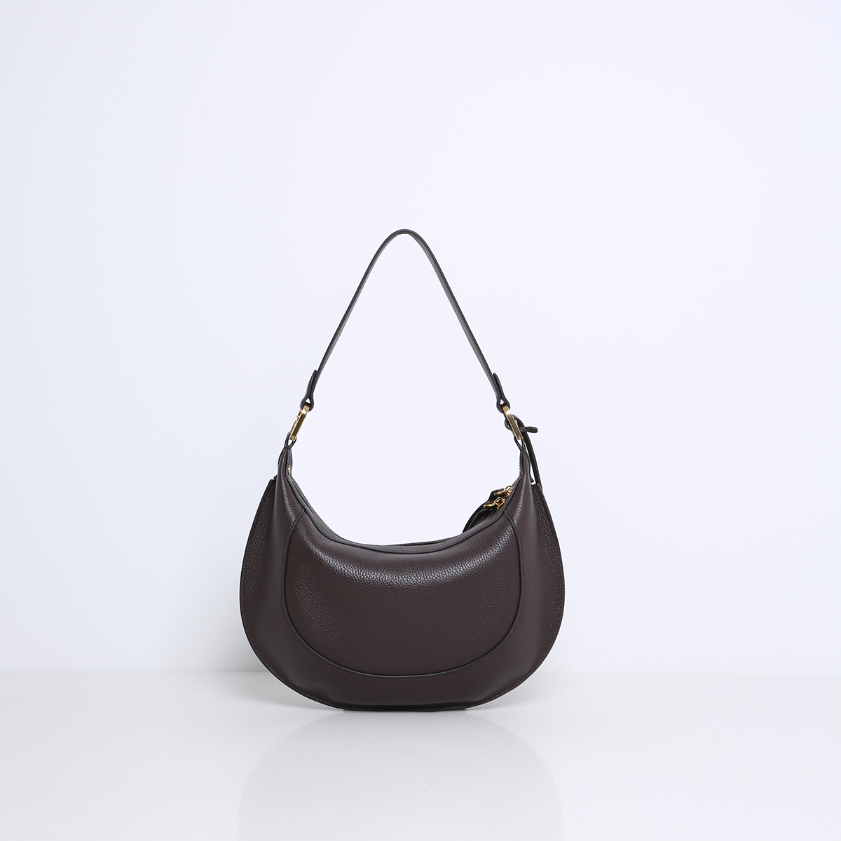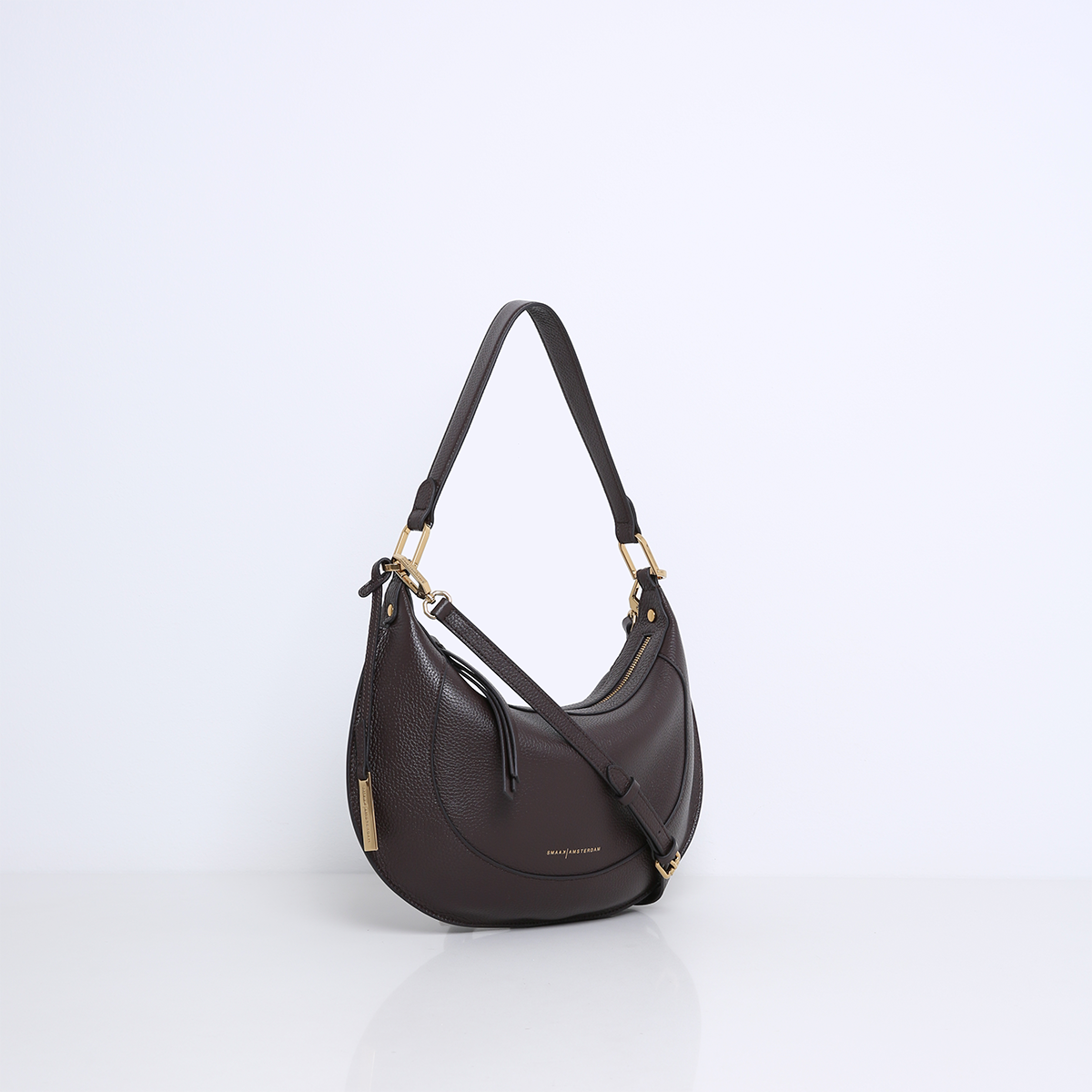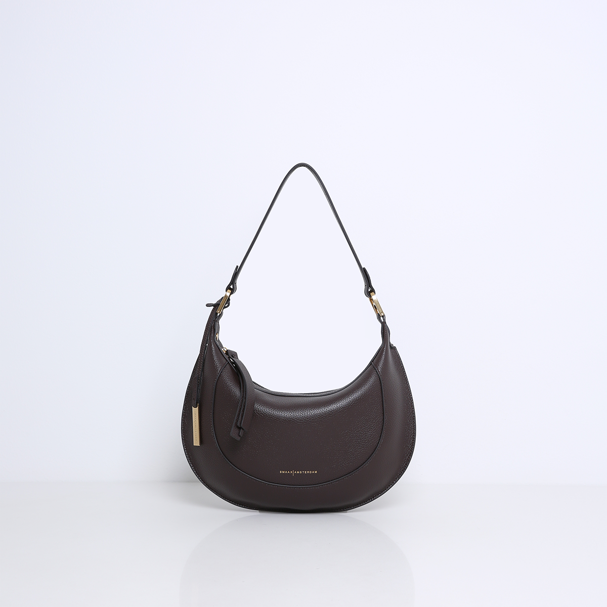De MARLON is een elegante tas met een opvallende, ovale saddle bag-vorm die direct in het oog springt. De tas is prachtig afgewerkt met verfijnde stiksels en luxe goudkleurige hardware, wat zorgt voor een chique en moderne uitstraling.