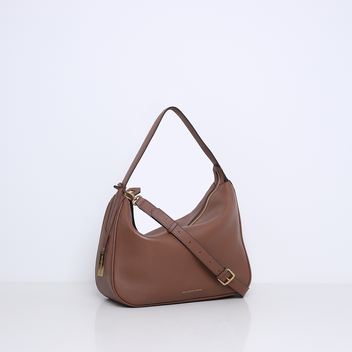 De MONROE is het grotere zusje van onze Daniel tas, een elegante mediumformaat hobo tas die stijl en functionaliteit moeiteloos combineert. De tas is prachtig afgewerkt met een luxe goudkleurige rits en heeft een vaste korte strap, waardoor je haar comfortabel over de schouder kunt dragen. Daarnaast wordt de tas geleverd met een extra lange strap, zodat je haar ook perfect crossbody kunt dragen. Het verfijnde detail aan de zijkant laat de MONROE echt opvallen en geeft elke outfit een chique, unieke touch.