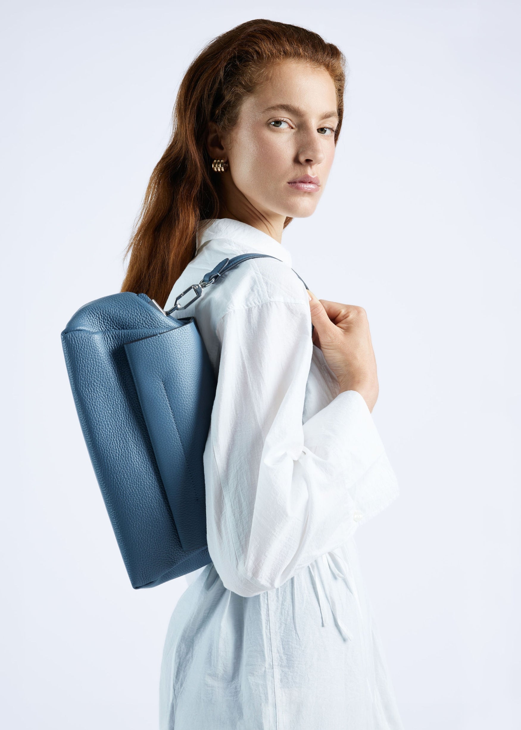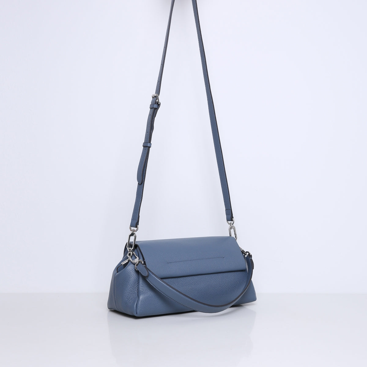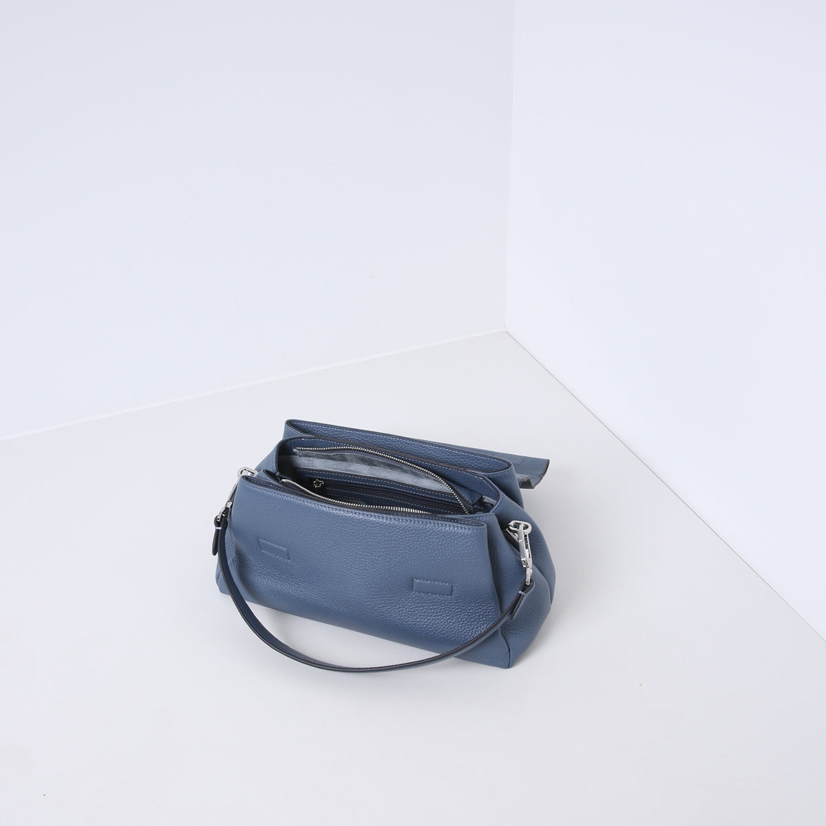De tas komt met twee afneembare hengsels; een korte schouderband en een lange crossbody band die verstelbaar is in lengte. De tas is gemaakt van zacht en soepel rundleer gevoerd met suedine (viscose) materiaal.