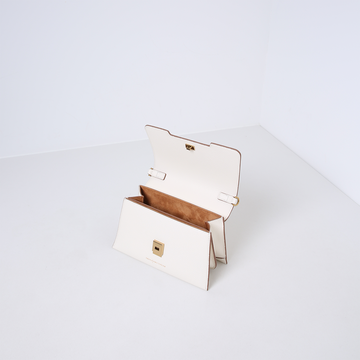 Het design heeft een fijne grip en mooie details aan de schouderband. Uniek aan het ontwerp is de indeling van compartimenten geïnspireerd op een accordeon.