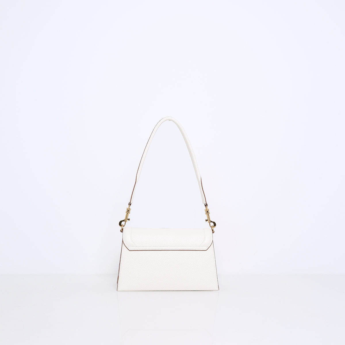 De BITTI gaat open aan de voorkant met een kliksluiting. Van binnen heeft de tas twee compartimenten met een extra open vakje aan de achterkant en is gevoerd met suedine (viscose) materiaal. De tas is gemaakt van zacht en soepel rundleer. Met de afneembare leren schouderband kun je deze schoudertas ook als crossbody tas dragen.