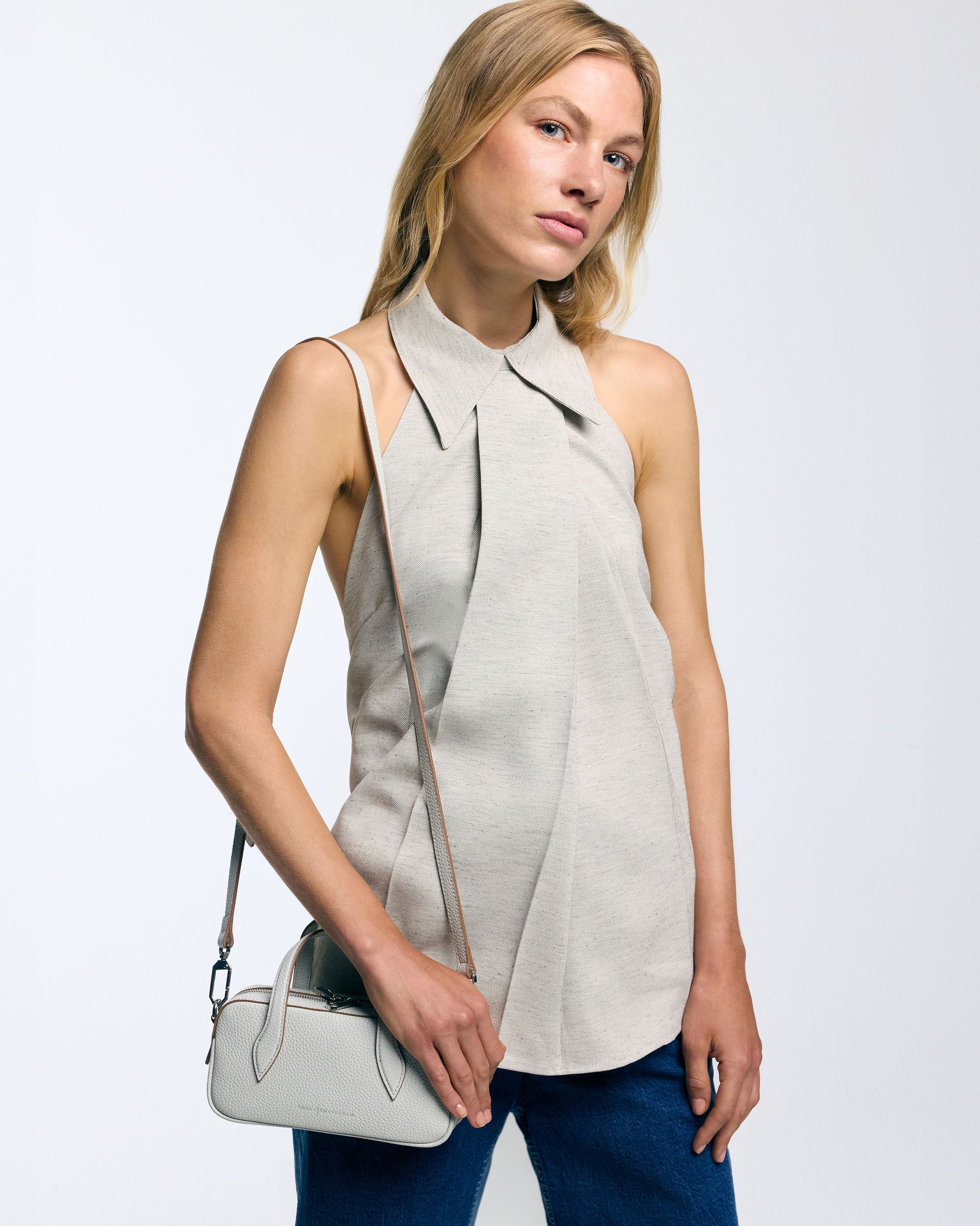 De JAMY is een compacte en elegante mini-handtas met een sterke persoonlijkheid. Het gestructureerde silhouet en de afgeronde hoeken geven deze tas een tijdloze uitstraling, perfect voor wie houdt van een minimalistische stijl met karakter.