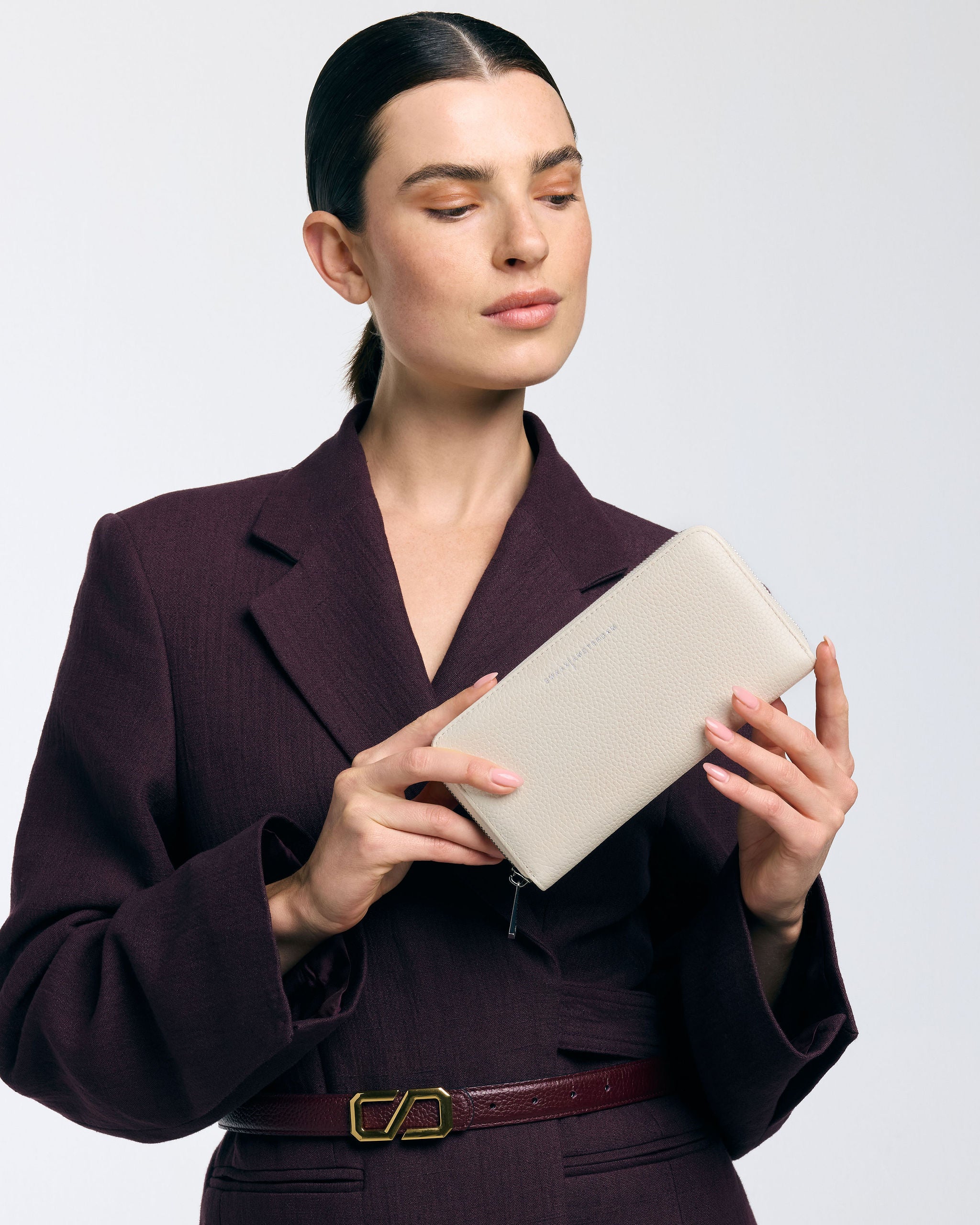 Minimalistisch van buiten, groots van binnen. De LUNA is een elegante leren portemonnee van Smaak Amsterdam, ontworpen voor vrouwen die hun stijl serieus nemen, tot in het kleinste detail. Gemaakt van hoogwaardig leer en afgewerkt met een robuuste zilverkleurige rits, is dit niet zomaar een portemonnee: het is een fashion statement.