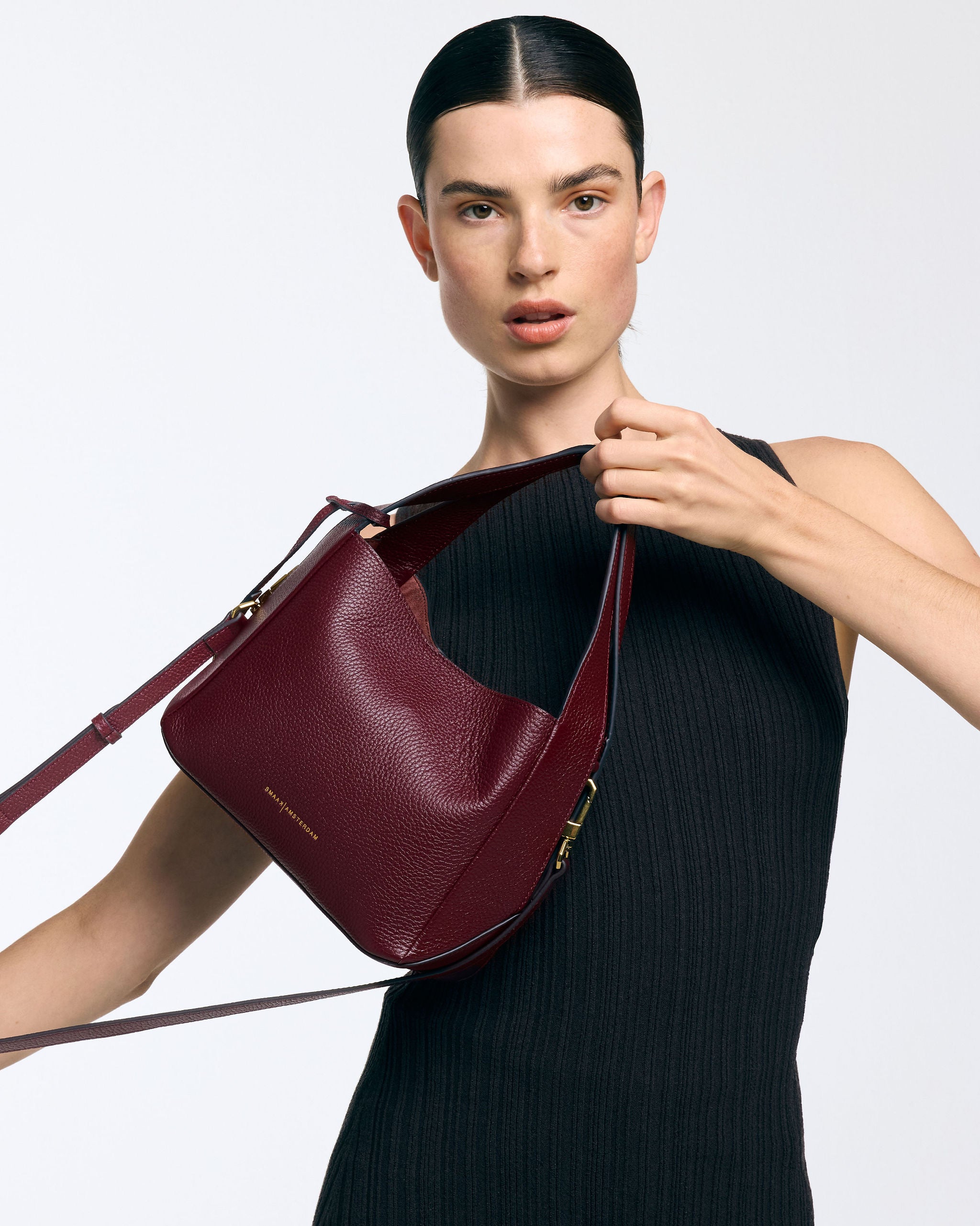 The SOPHIE is a leather handbag that combines elegance with practical functionality, ideal for everyday use and versatile styling. The handbag features two sturdy leather handles that seamlessly transition to the sides of the bag, ending in a stylish slit. These slits not only add a refined detail but also provide extra flexibility and comfort when carrying.