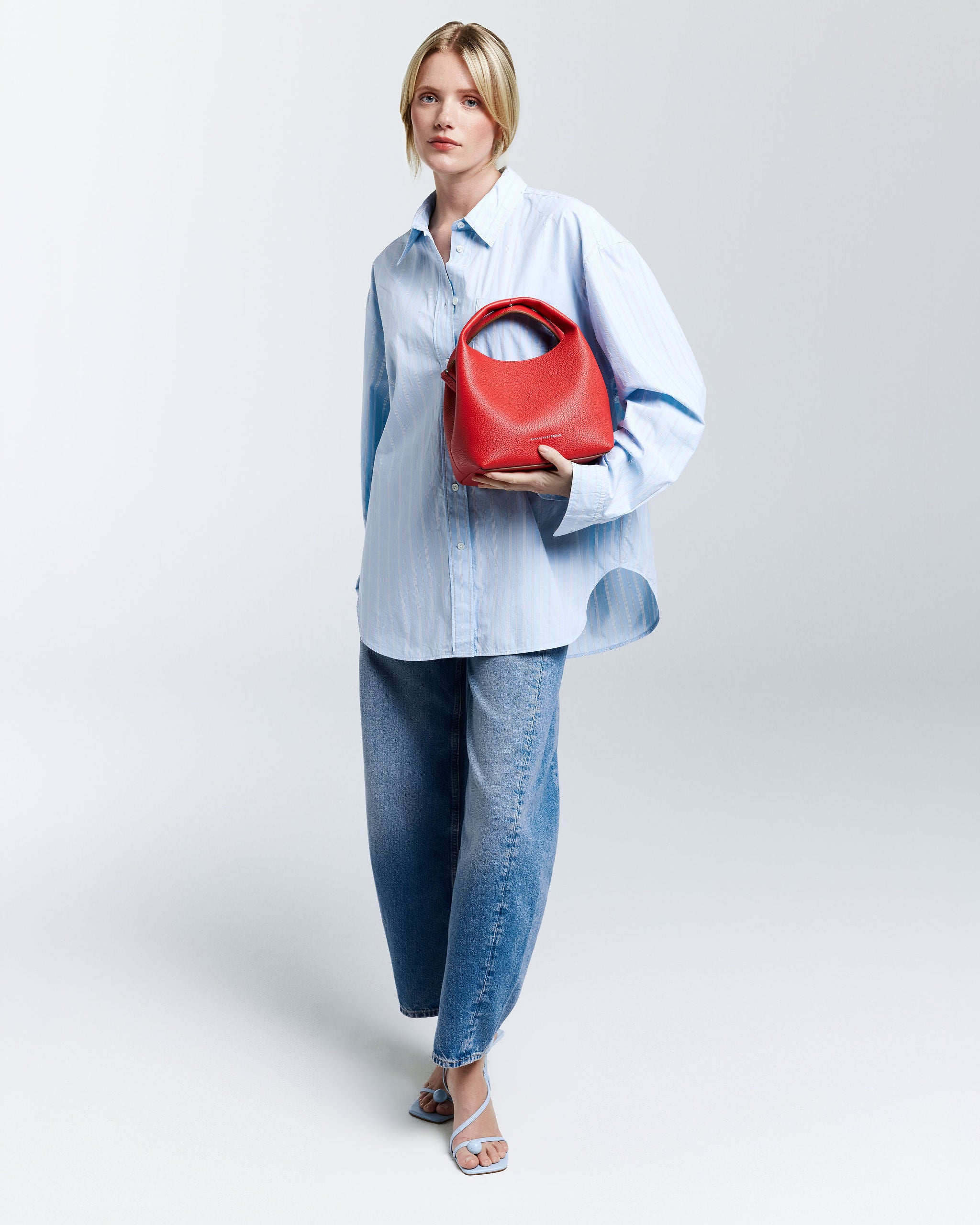 De zilverkleurige details zorgen voor een verfijnd contrast met de kleur van het leer en voering, terwijl het compacte formaat je essentials stijlvol bij elkaar houdt. Draag haar aan het handvat voor een classy uitstraling, of crossbody voor een effortless cool vibe.