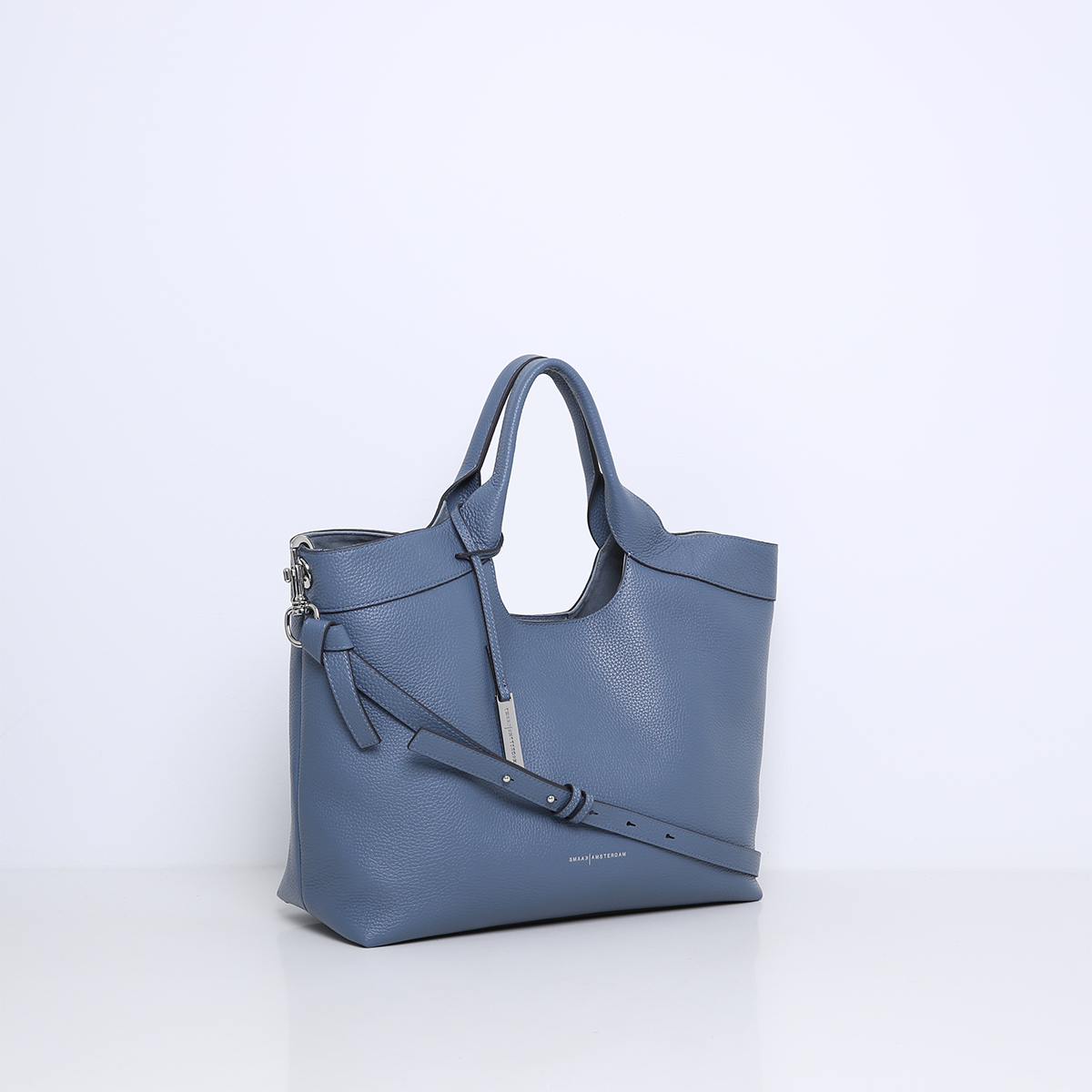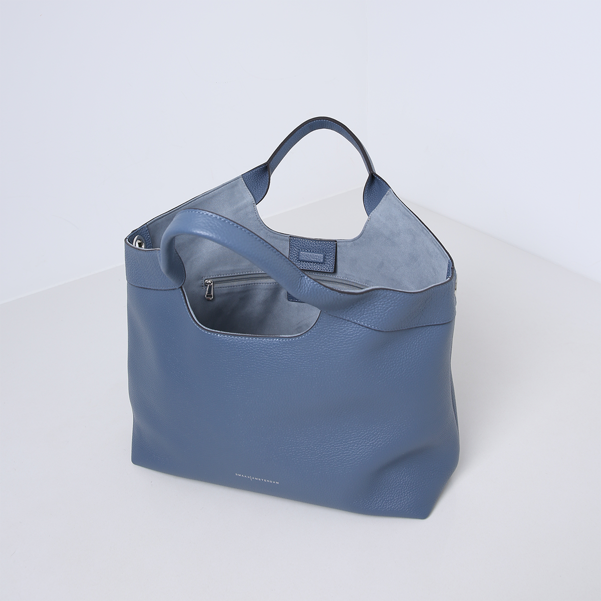 The bag is made of soft, supple cowhide. It features multiple interior pockets and is lined with suede (viscose). The detachable, adjustable shoulder strap allows you to wear it crossbody as well.