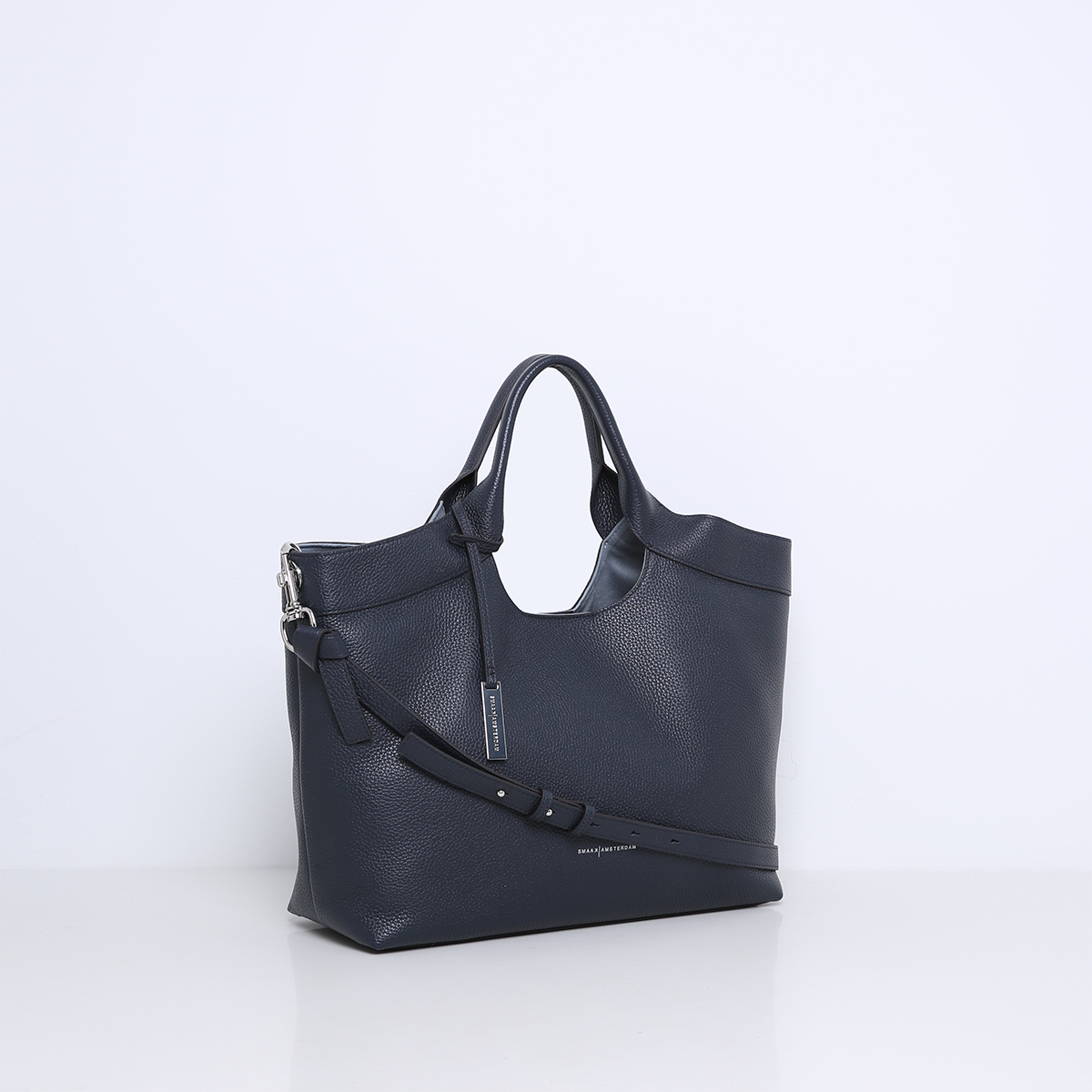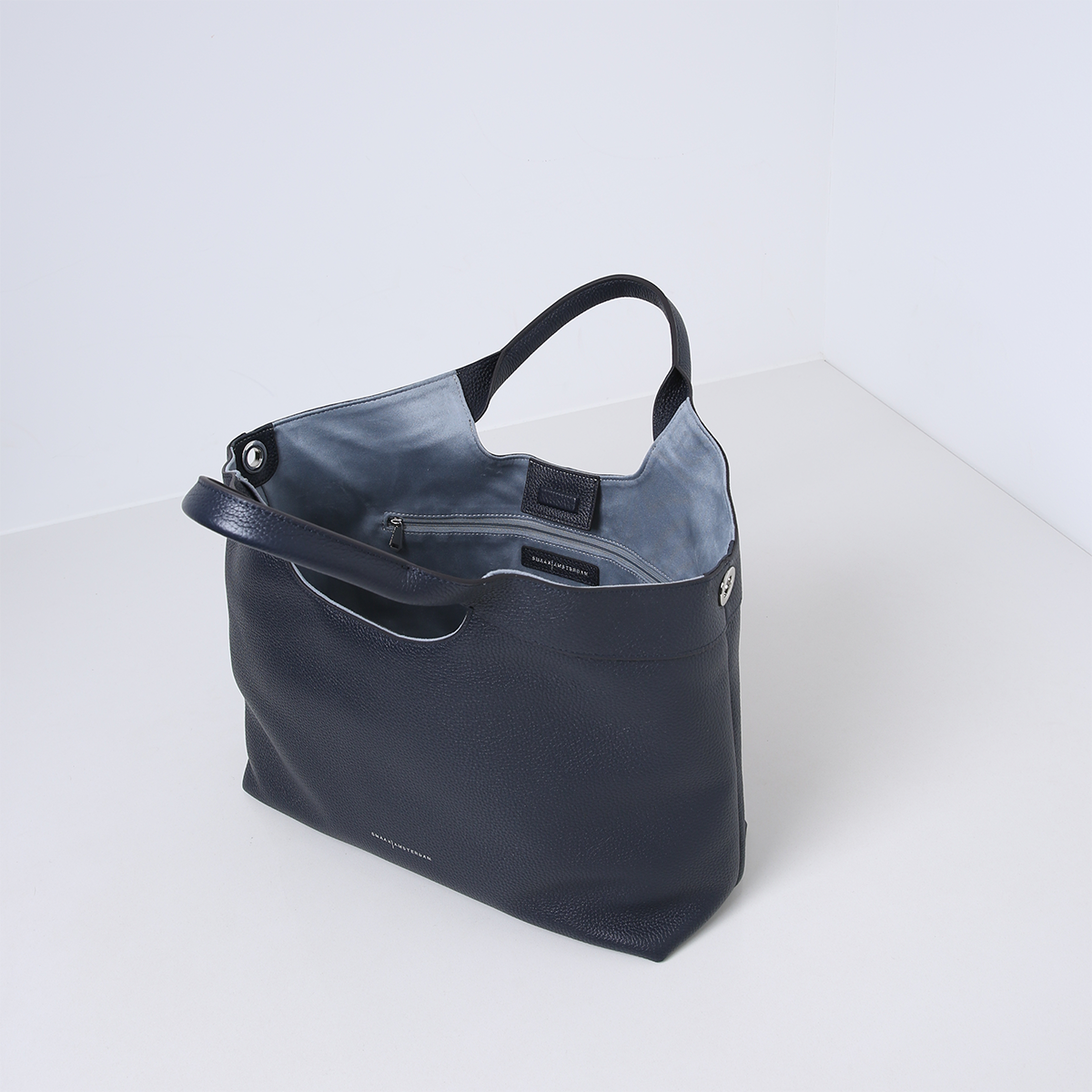 The bag is made of soft, supple cowhide. It features multiple interior pockets and is lined with suede (viscose). The detachable, adjustable shoulder strap allows you to wear it crossbody as well.