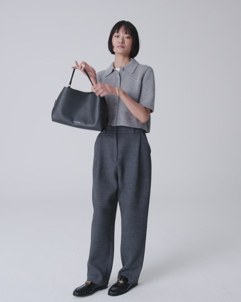 Je draagt ’m aan het korte hengsel in de hand of over de schouder, maar er zit ook een lang, verstelbaar hengsel bij zodat je gemakkelijk kunt wisselen naar crossbody. Gemaakt van soepel, hoogwaardig leer met een mooie structuur en minimalistisch afgewerkt met solide hardware en een subtiel logo. Tijdloos, praktisch en net even anders door de open, nonchalante look.