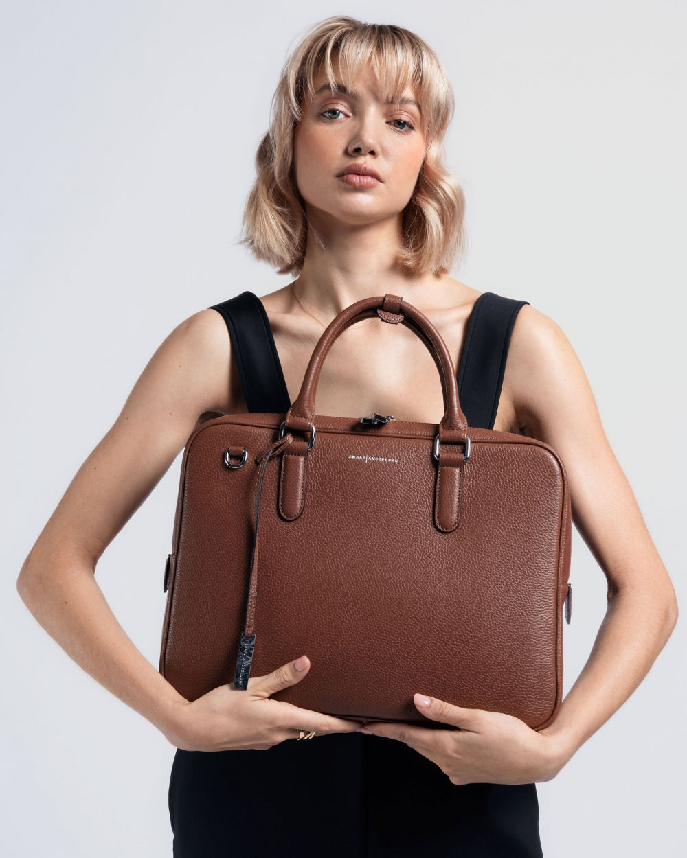 De tas beschikt over meerdere binnenvakjes en is gevoerd met suedine (viscose) materiaal. Er is een aparte ruimte om de laptop in te bewaren geschikt voor een 13 Inch laptop. De 15 Inch laptop past in het middengedeelte van de tas. Naast het vervoeren van je laptop is er ook nog ruimte om documenten of andere items in te bewaren zoals een flesje water en je essentials. De tas is afgewerkt met zilveren hardware waardoor deze stoere uitstraling krijgt.