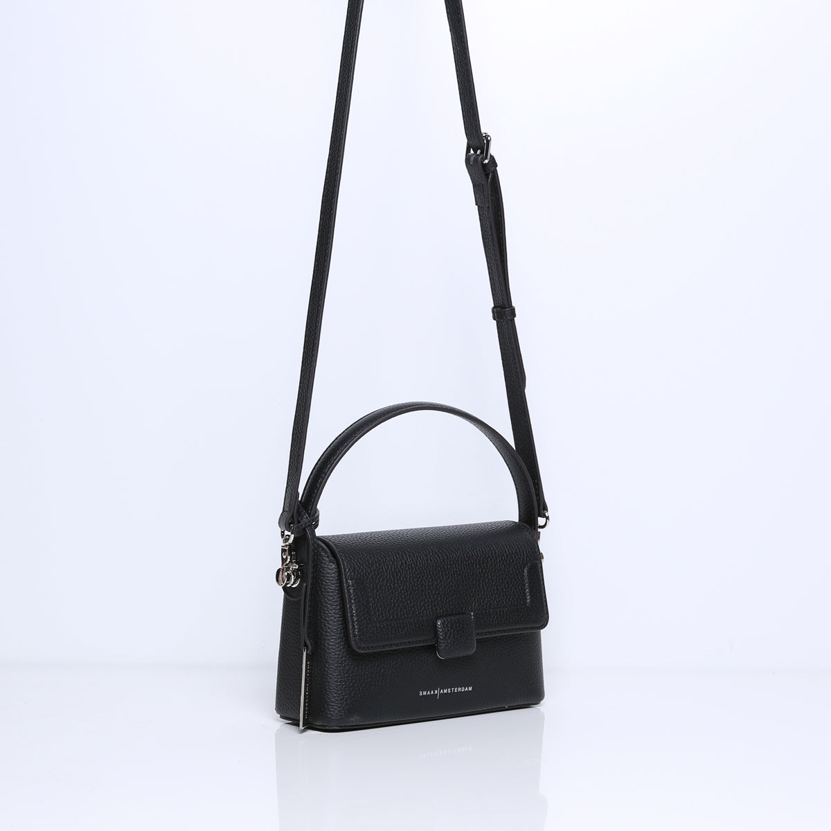 De ALAN heeft een kort handvat welke naar achteren kan worden gezet en een afneembare leren crossbody band. De handtas gaat aan de voorkant open met een magneetsluiting. Er is genoeg ruimte voor al je essentials zoals een telefoon, portemonnee, (zonne)bril en sleutels. Door de rechthoekige en open vorm kun je makkelijk en overzichtelijk bij je spullen.