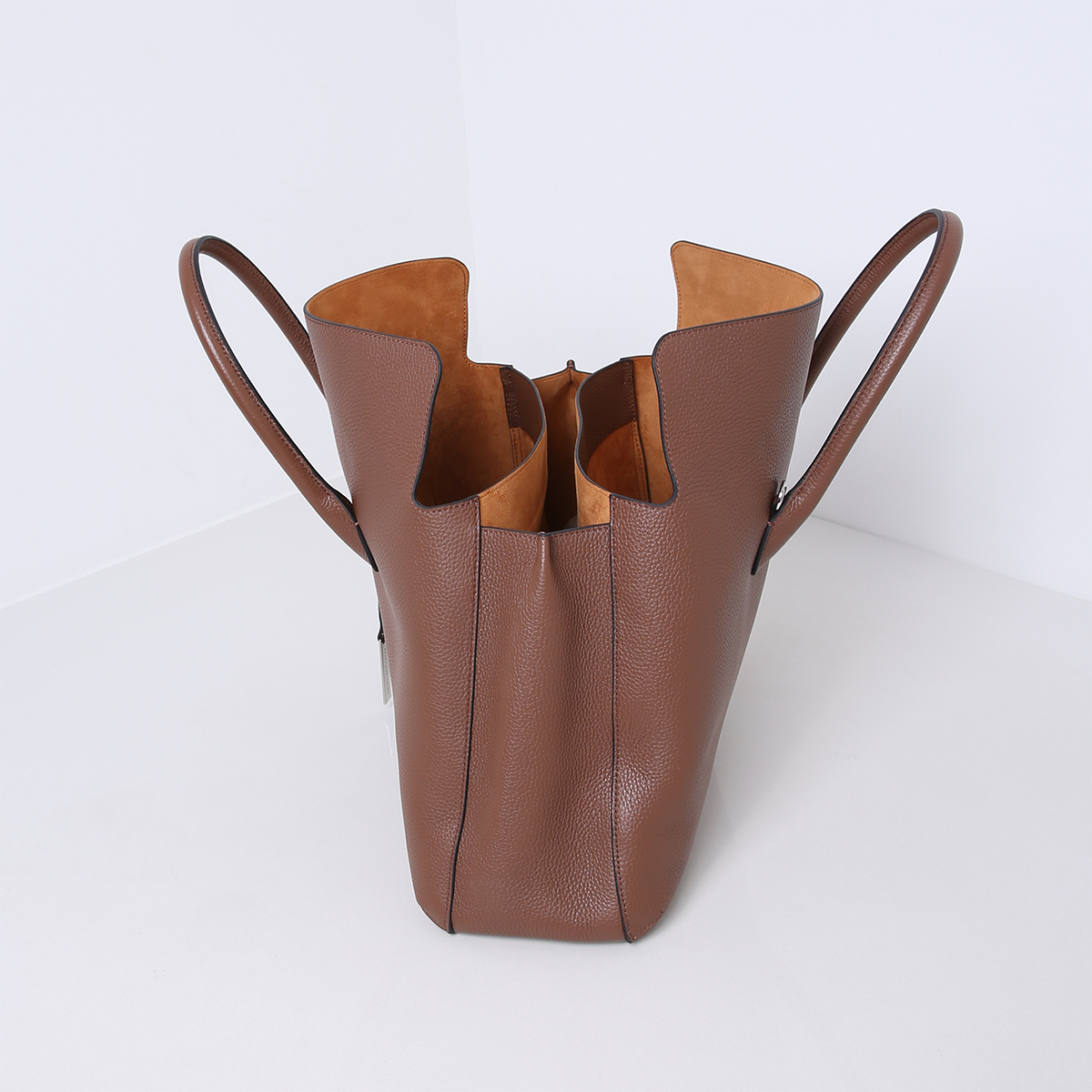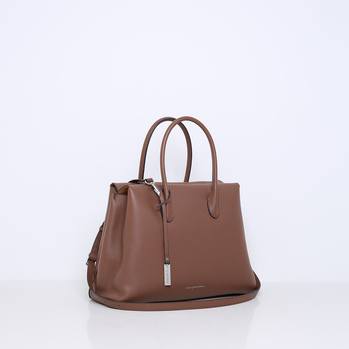 Hoewel de BETTE geen rits heeft, zorgen de overlappende leren flappen aan de bovenkant voor een subtiele, gesloten uitstraling. Hierdoor behoudt de tas een strakke en verfijnde vorm, terwijl je toch snel toegang hebt tot je spullen. De lange, afneembare strap maakt het mogelijk om de tas zowel als handtas als crossbodytas te dragen.