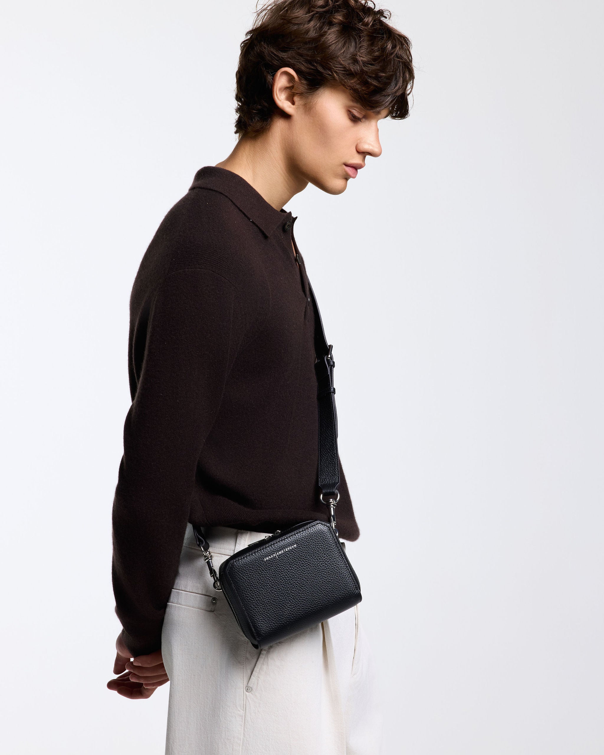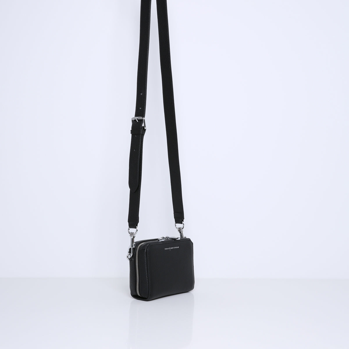 De tas is gemaakt van zacht en soepel rundleer. Beschikt over twee kleine binnenvakjes en is gevoerd met suedine (viscose) materiaal.
