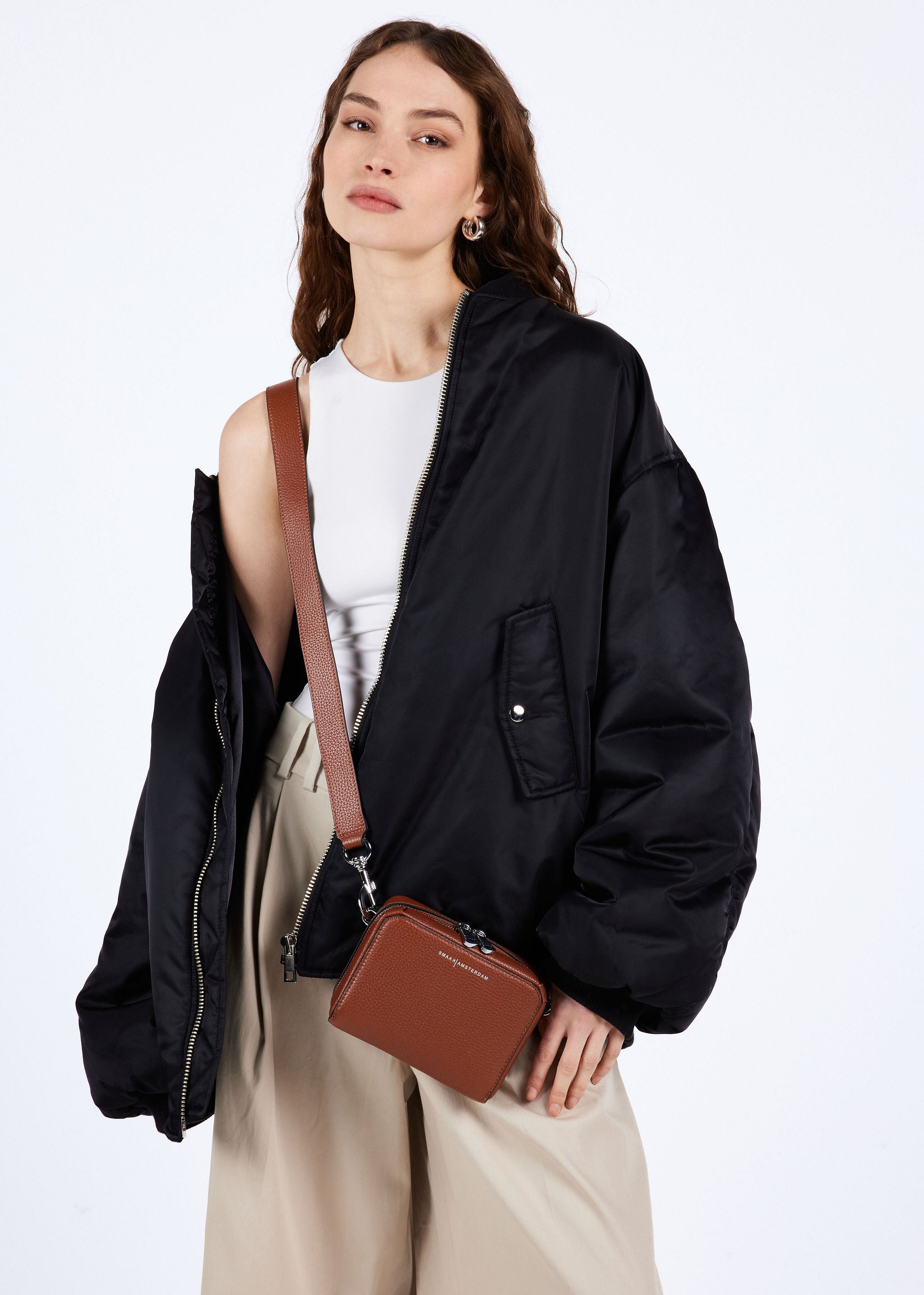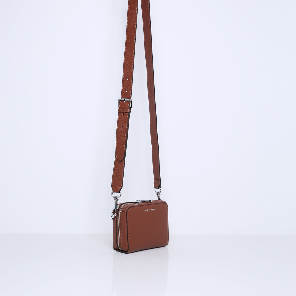 De tas is gemaakt van zacht en soepel rundleer. Beschikt over twee kleine binnenvakjes en is gevoerd met suedine (viscose) materiaal.