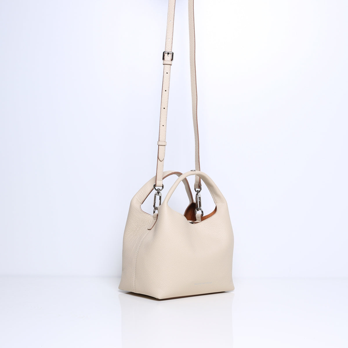 De zilverkleurige details zorgen voor een verfijnd contrast met de kleur van het leer en voering, terwijl het compacte formaat je essentials stijlvol bij elkaar houdt. Draag haar aan het handvat voor een classy uitstraling, of crossbody voor een effortless cool vibe.