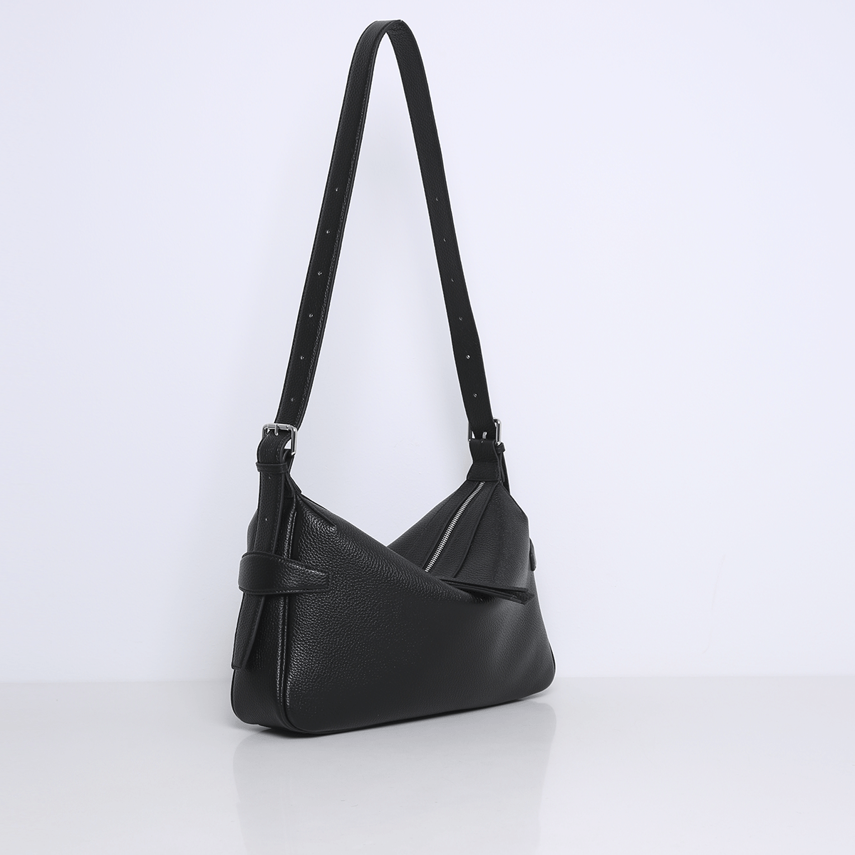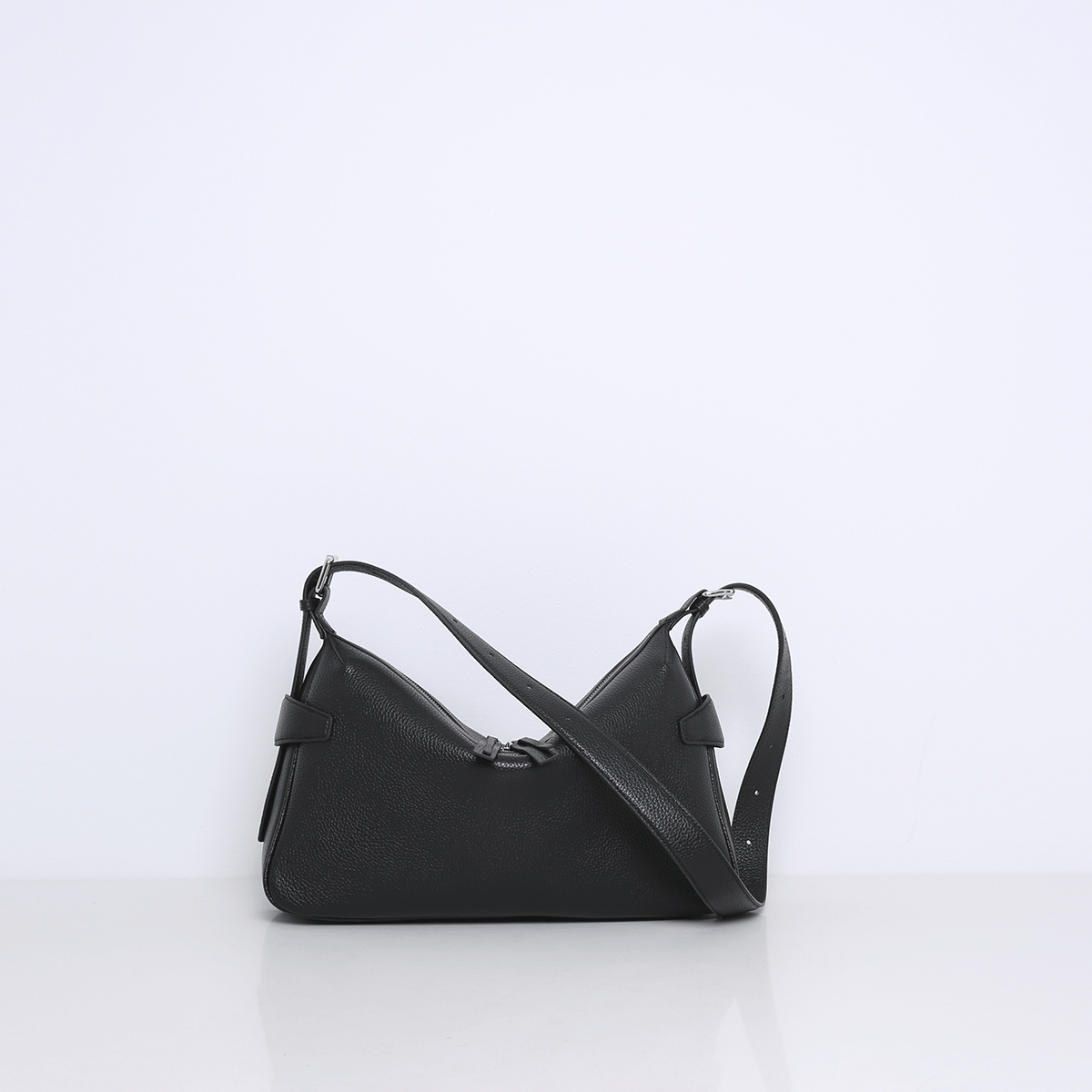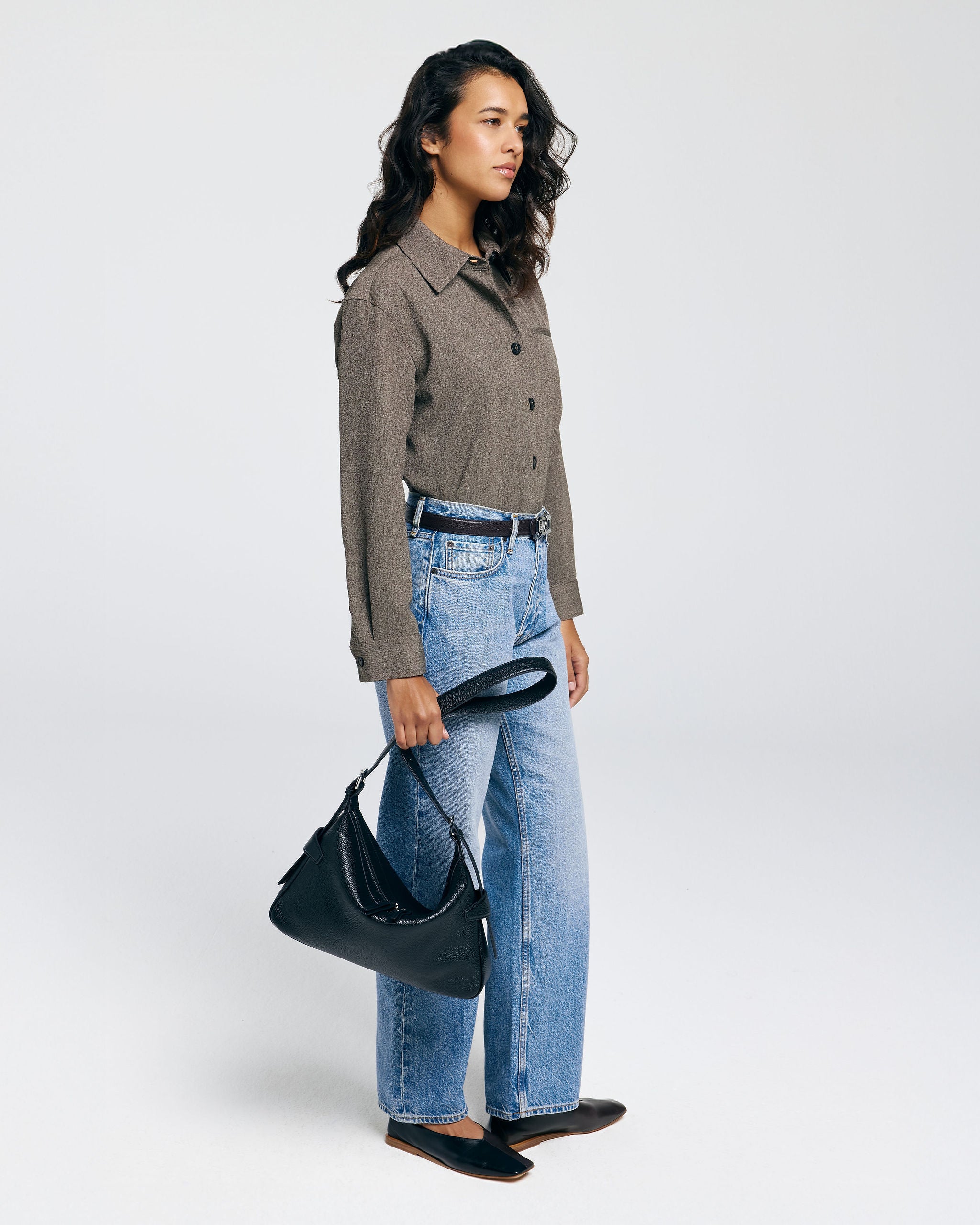 Een compacte schoudertas met een zachte, moderne vorm en een nonchalante valling. Het slanke silhouet ligt mooi tegen het lichaam en maakt de tas geschikt voor elke dag.